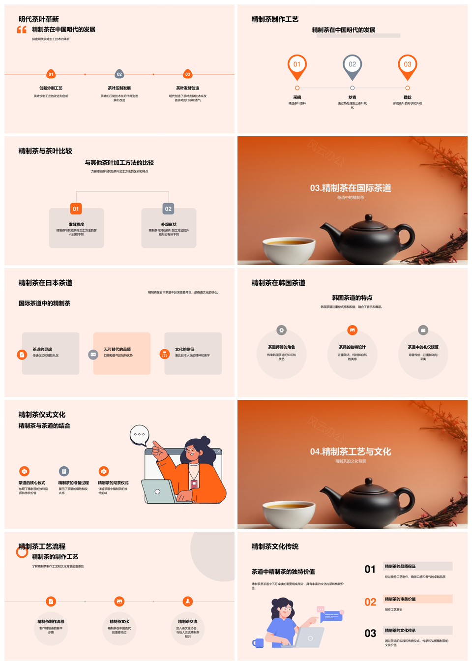 这是一张精制茶明代手工制作与国际茶道文化比较PPT模板,包含精制茶、明代、手工制作、国际、茶道文化等主题内容,也可用作精制茶明代手工制作国际茶道、明代手工制作国际茶道文化、手工制作国际茶道文化比较、精制茶手工制作国际茶道文化、精制茶手工制作国际茶道、明代手工制作国际茶道、手工制作国际茶道文化、国际茶道文化比较、精制茶明代手工制作、精制茶国际茶道文化、精制茶手工制作、明代手工制作、国际茶道文化、文化比较、手工制作国际茶道等PPT场景使用。 风云办公提供的精制茶明代手工制作与国际茶道文化比较PPT模板,下载格式为pptx,一共23页,作品中文字及图均可以修改和编辑,图片更改请在作品中右键图片并更换,文字修改请直接点击文字进行修改。