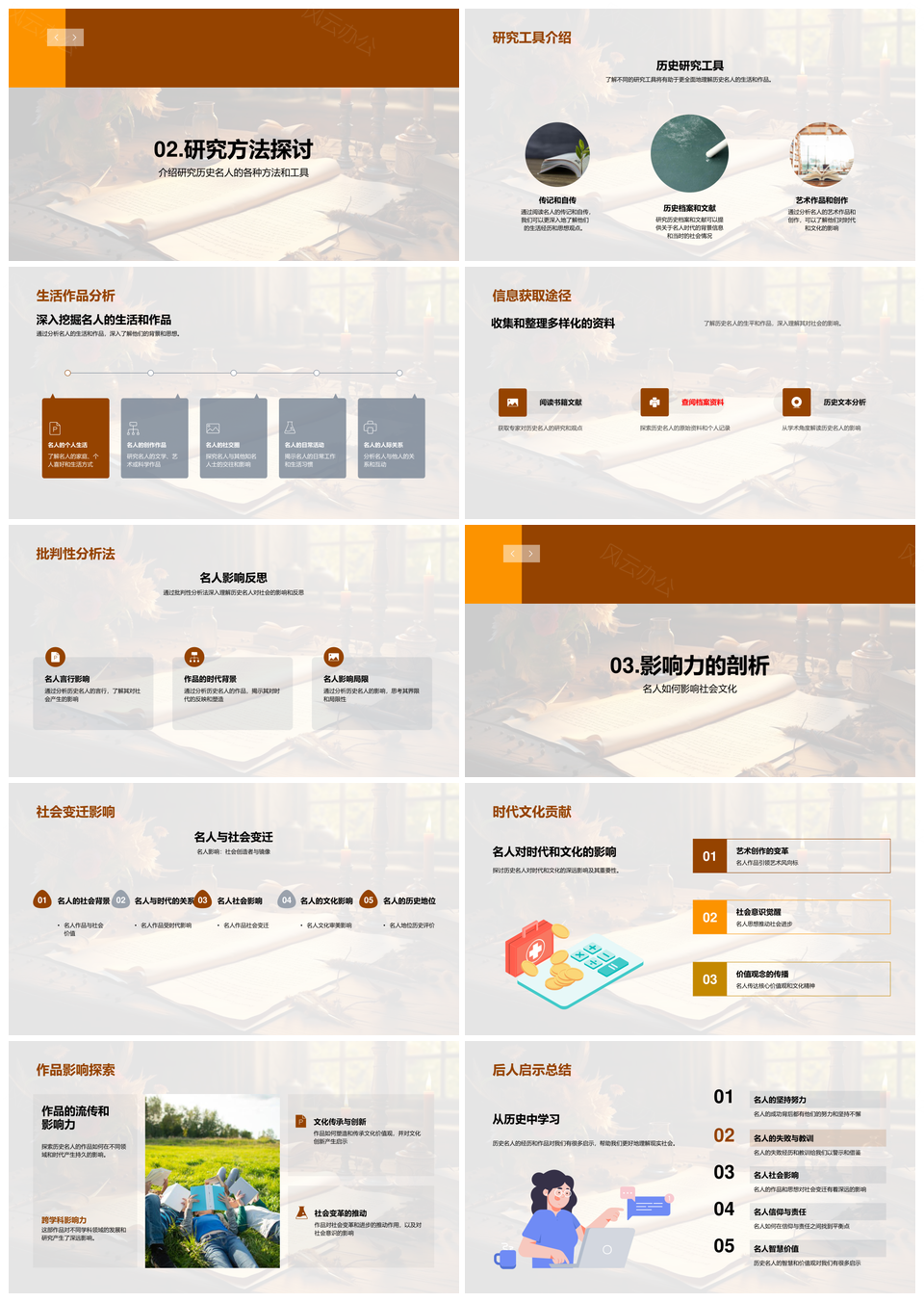 风云办公提供的历史名人教育研究方法与社会文化变迁PPT模板,下载格式为pptx,一共28页,作品中文字及图均可以修改和编辑,图片更改请在作品中右键图片并更换,文字修改请直接点击文字进行修改。