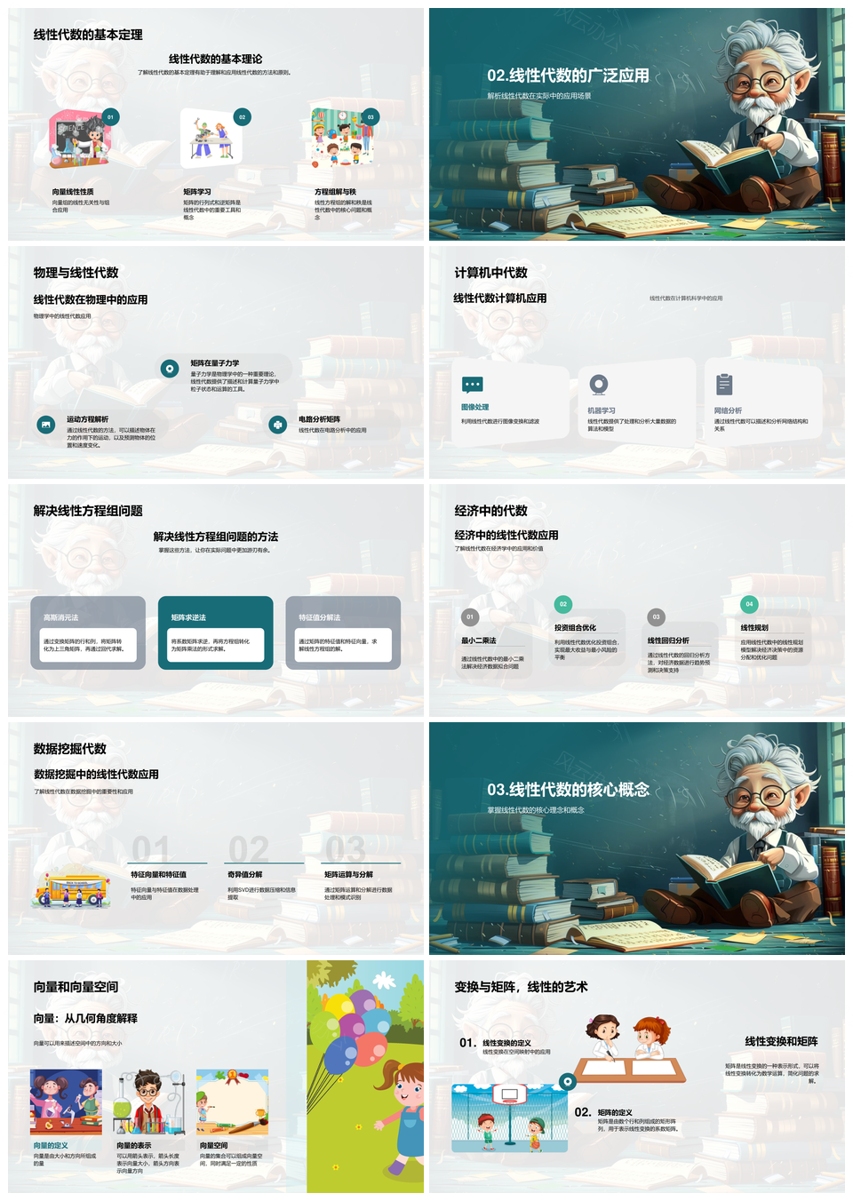 2025线性代数矩阵向量应用数据挖掘计算机物理PPT模板推荐