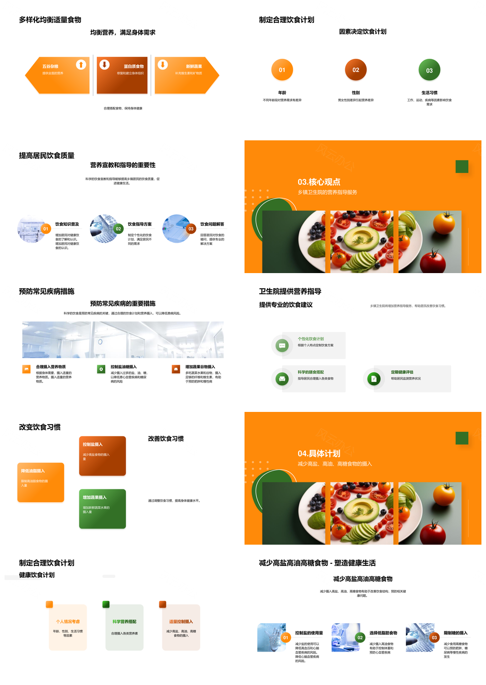 这是一张乡镇健康饮食指南营养师助力居民改善营养PPT模板,包含乡镇、健康饮食指南、营养师、助力、居民、改善、营养等主题内容,也可用作乡镇健康饮食指南、健康饮食指南营养师、饮食指南营养师助力、营养师助力居民改善、助力居民改善营养、健康饮食指南、指南营养师助力、助力居民改善、饮食指南、营养师助力、健康饮食、居民改善、改善营养、饮食指南营养师、乡镇健康饮食等PPT场景使用。 风云办公提供的乡镇健康饮食指南营养师助力居民改善营养PPT模板,下载格式为pptx,一共19页,作品中文字及图均可以修改和编辑,图片更改请在作品中右键图片并更换,文字修改请直接点击文字进行修改。