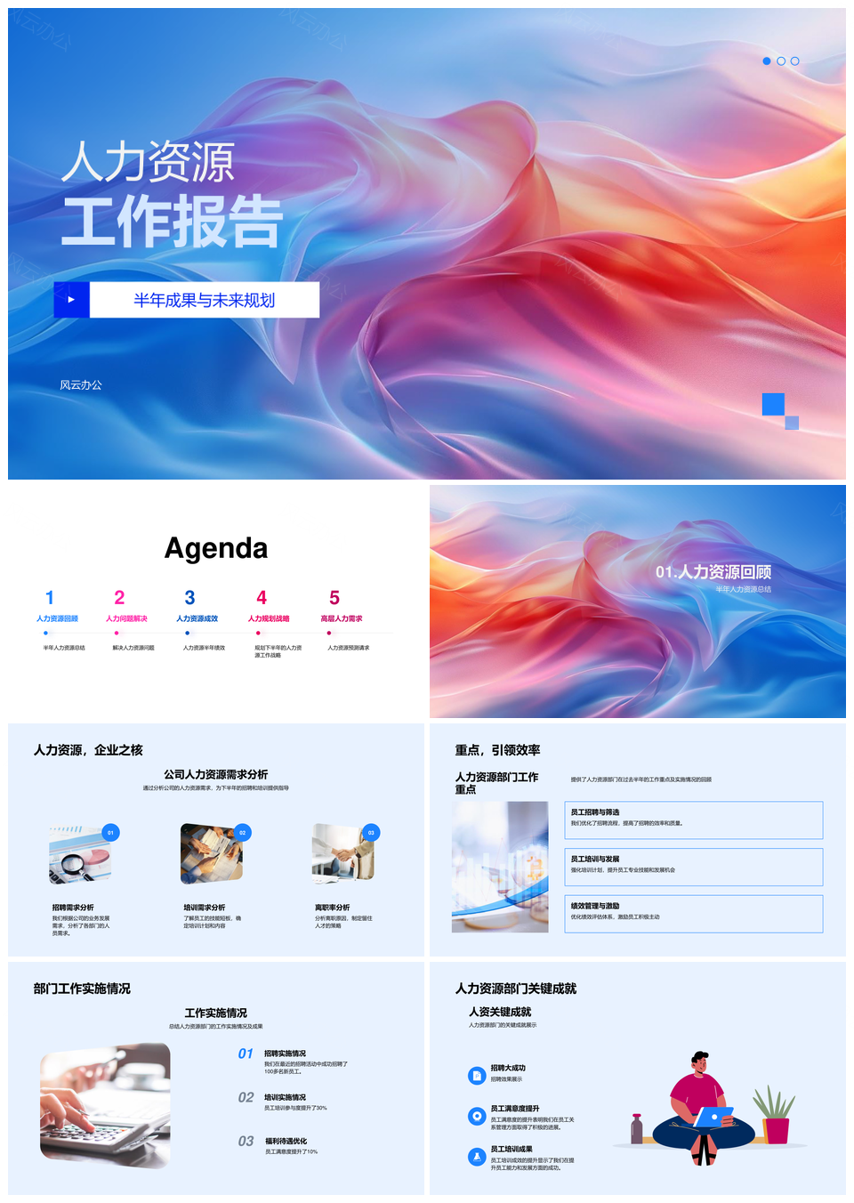 人力资源半年成果招聘培训福利优化未来规划PPT模板推荐