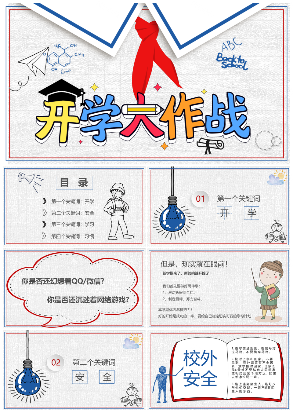 简约风开学季开学大作战PPT模板推荐