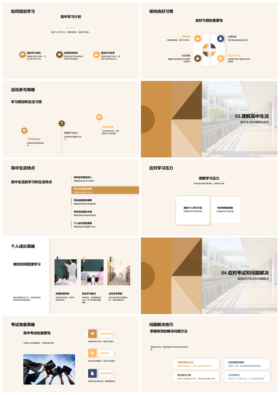 风云办公提供的高一生活学校建筑全解析PPT模板,下载格式为pptx,一共23页,作品中文字及图均可以修改和编辑,图片更改请在作品中右键图片并更换,文字修改请直接点击文字进行修改。