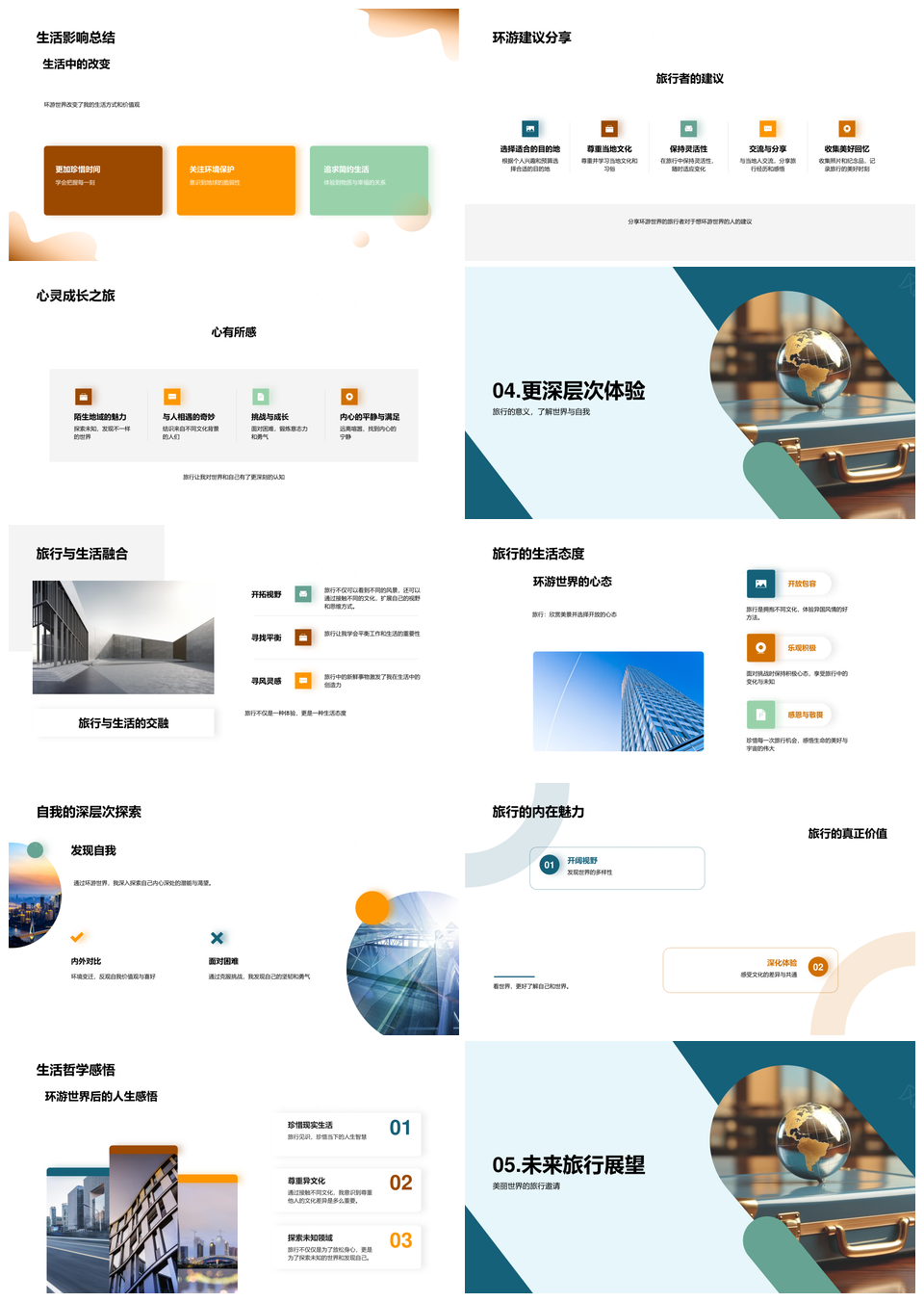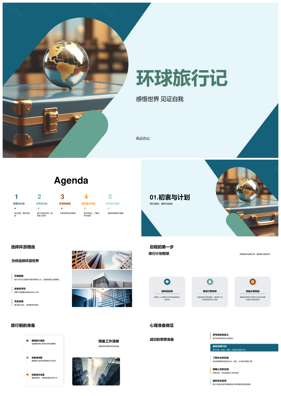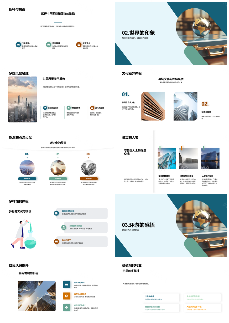 环球旅行者分享环游世界规划与文化体验PPT模板推荐