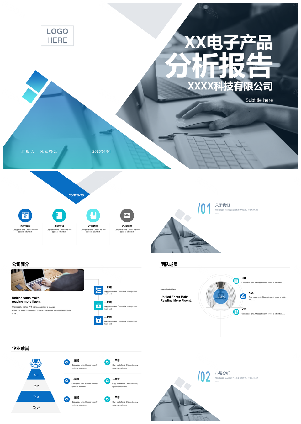 这是一张2025电子产品市场极简色块蓝色渐变分析报告PPT模板,包含2025、电子产品、市场、极简、色块、蓝色、渐变、分析报告等主题内容,也可用作2025电子产品市场极简色块蓝色渐变、2025电子产品市场极简色块、电子产品市场极简色块蓝色、市场极简色块蓝色渐变、极简色块蓝色渐变分析报告、2025电子产品市场极简、电子产品市场极简色块、极简色块蓝色渐变、色块蓝色渐变分析报告、2025电子产品市场、电子产品市场极简、极简色块蓝色、蓝色渐变分析报告、2025电子产品、极简色块、蓝色渐变等PPT场景使用。 风云办公提供的2025电子产品市场极简色块蓝色渐变分析报告PPT模板,下载格式为pptx,一共22页,作品中文字及图均可以修改和编辑,图片更改请在作品中右键图片并更换,文字修改请直接点击文字进行修改。