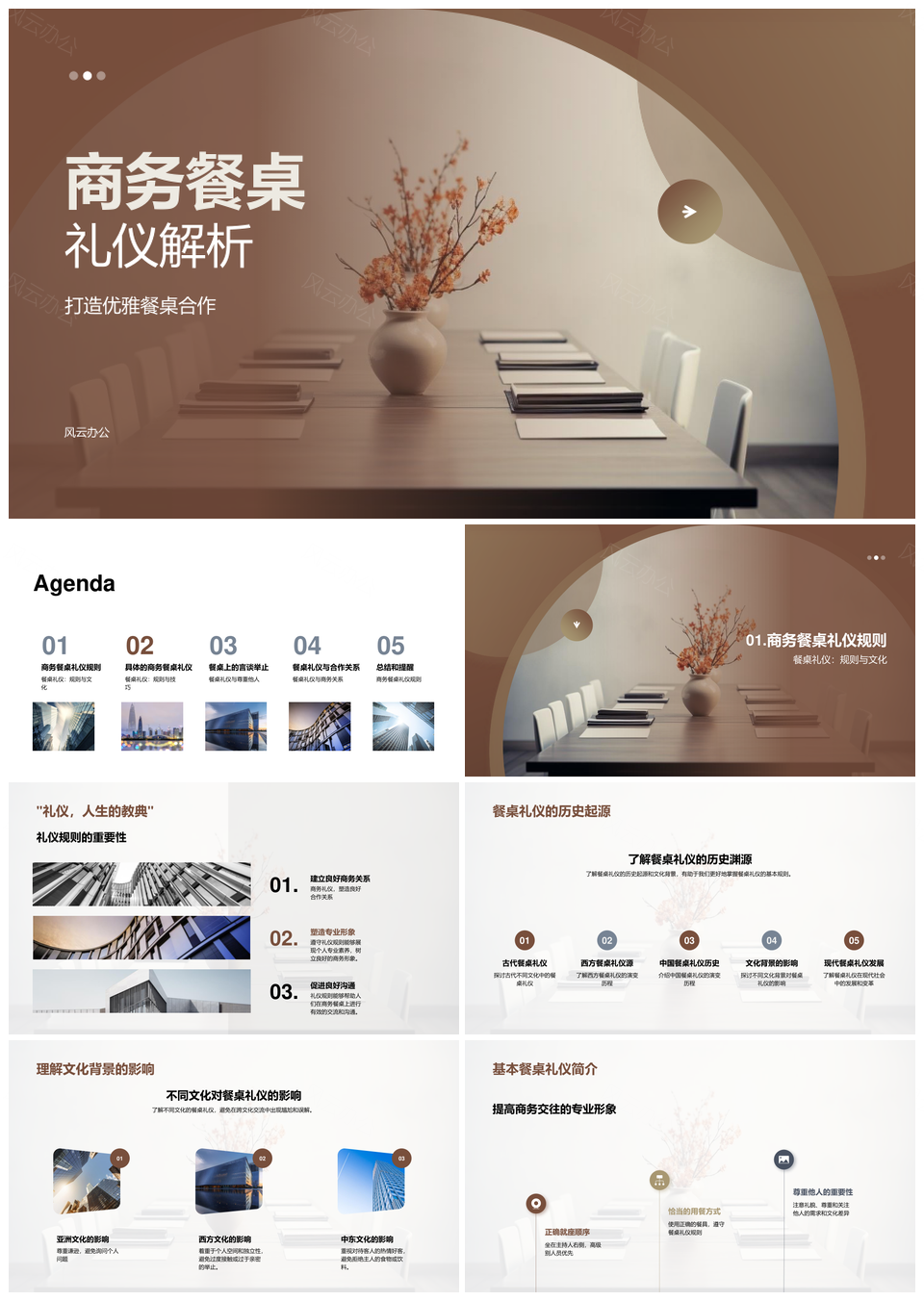 风云办公提供的商务餐桌礼仪优雅合作文化规则PPT模板,下载格式为pptx,一共28页,作品中文字及图均可以修改和编辑,图片更改请在作品中右键图片并更换,文字修改请直接点击文字进行修改。