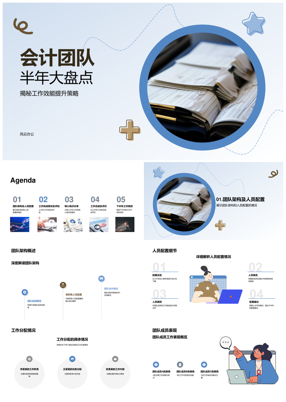 会计团队半年效能评估人员配置亮点挑战饼图建议PPT模板推荐