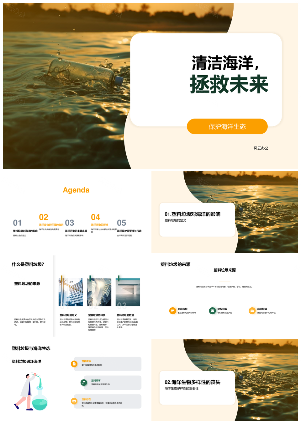 风云办公提供的守护海洋生态科学家高中生减塑行动PPT模板,下载格式为pptx,一共23页,作品中文字及图均可以修改和编辑,图片更改请在作品中右键图片并更换,文字修改请直接点击文字进行修改。