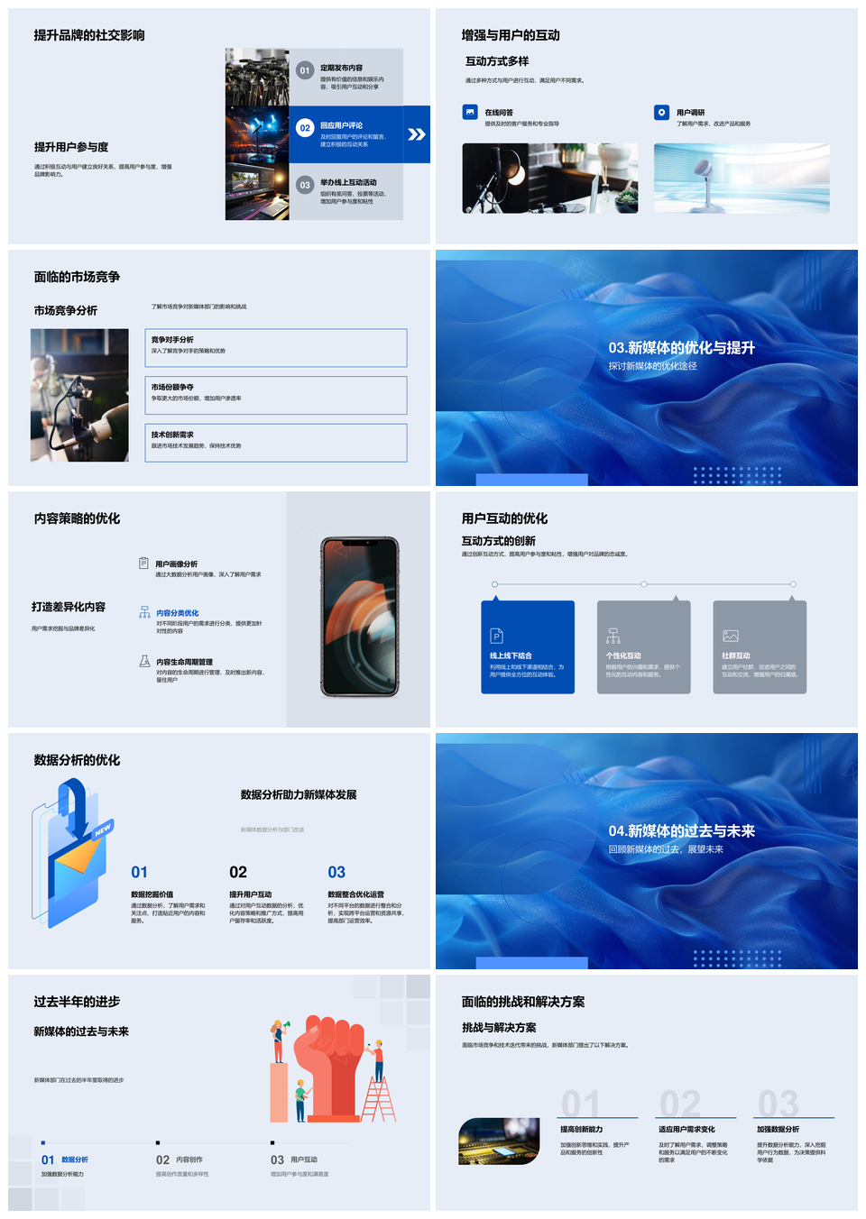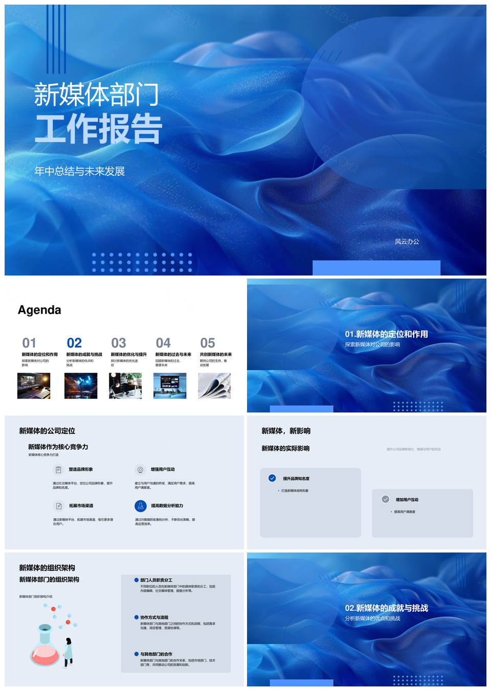 风云办公提供的新媒体工作报告聚力资源共创新媒未来PPT模板,下载格式为pptx,一共23页,作品中文字及图均可以修改和编辑,图片更改请在作品中右键图片并更换,文字修改请直接点击文字进行修改。