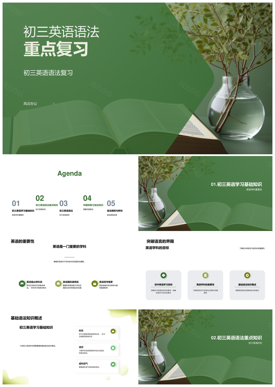 风云办公提供的初三英语语法时态语态基础重点复习PPT模板,下载格式为pptx,一共31页,作品中文字及图均可以修改和编辑,图片更改请在作品中右键图片并更换,文字修改请直接点击文字进行修改。