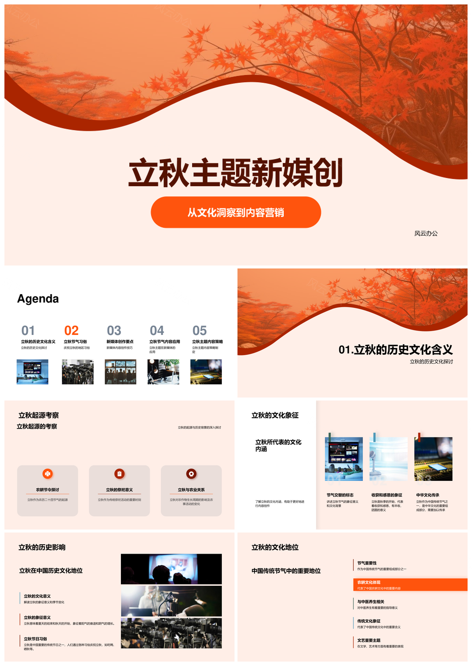 风云办公提供的立秋新媒体创探源秋叶内容营销PPT模板,下载格式为pptx,一共28页,作品中文字及图均可以修改和编辑,图片更改请在作品中右键图片并更换,文字修改请直接点击文字进行修改。
