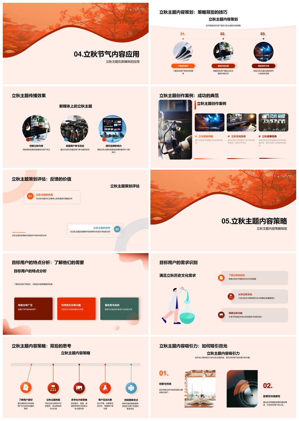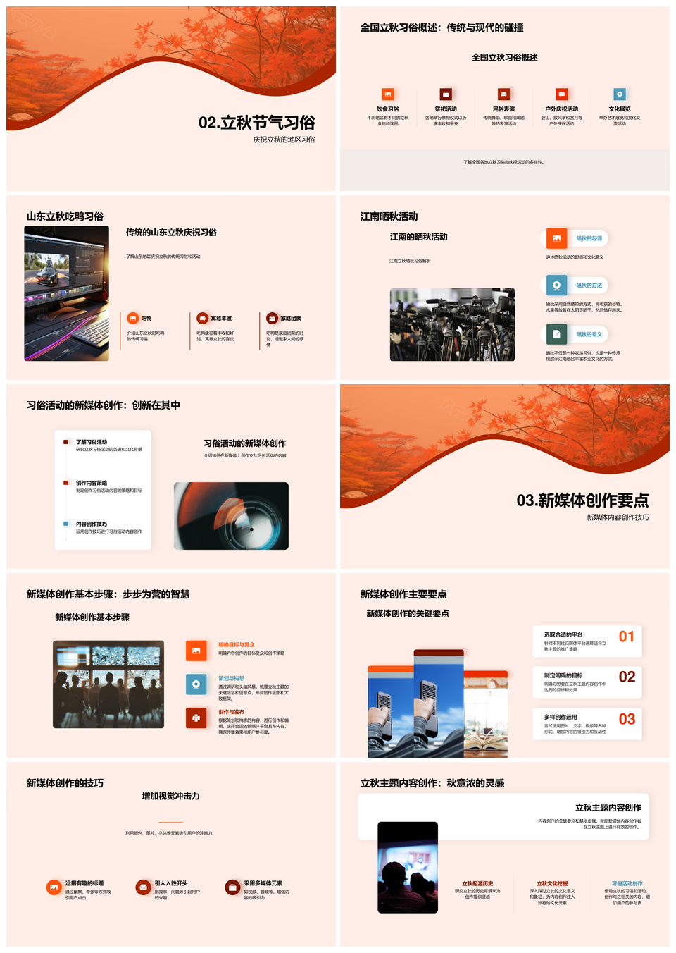 这是一张立秋新媒体创探源秋叶内容营销PPT模板,包含立秋、新媒体、创探、秋叶、内容营销等主题内容,也可用作立秋新媒体探源秋叶、立秋新媒体内容营销、新媒体探源秋叶内容营销、探源秋叶内容营销、立秋探源秋叶内容营销、新媒体探源秋叶内容、立秋新媒体探源内容、新媒体秋叶内容营销、立秋秋叶内容营销、立秋探源秋叶、新媒体探源内容营销、秋叶新媒体内容营销、立秋新媒体秋叶、立秋新媒体探源、新媒体探源秋叶等PPT场景使用。