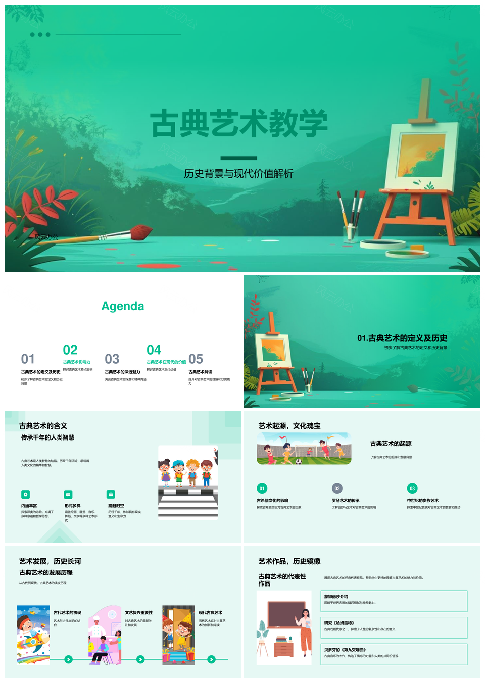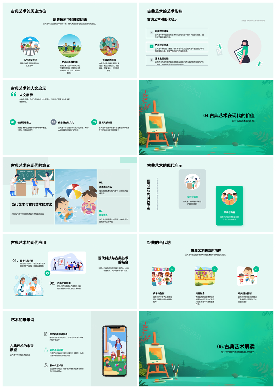 古典艺术历史影响现代人文审美创作价值PPT模板推荐