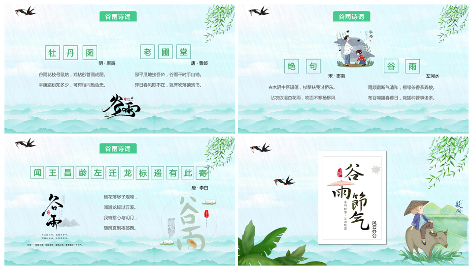 绿色中国风谷雨传统民族文化二十四节气PPT模板