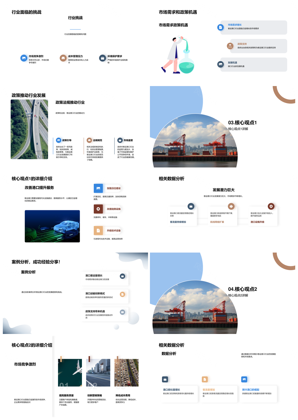 风云办公提供的客运港口行业发展趋势与政策分析PPT模板,下载格式为pptx,一共23页,作品中文字及图均可以修改和编辑,图片更改请在作品中右键图片并更换,文字修改请直接点击文字进行修改。