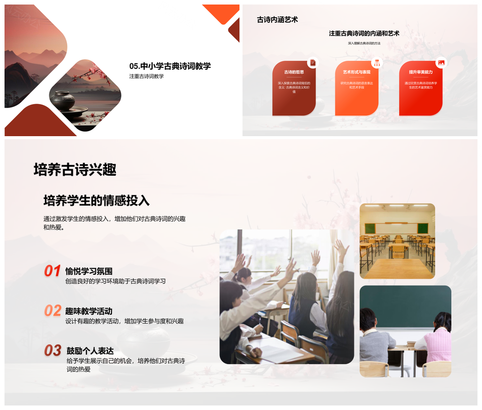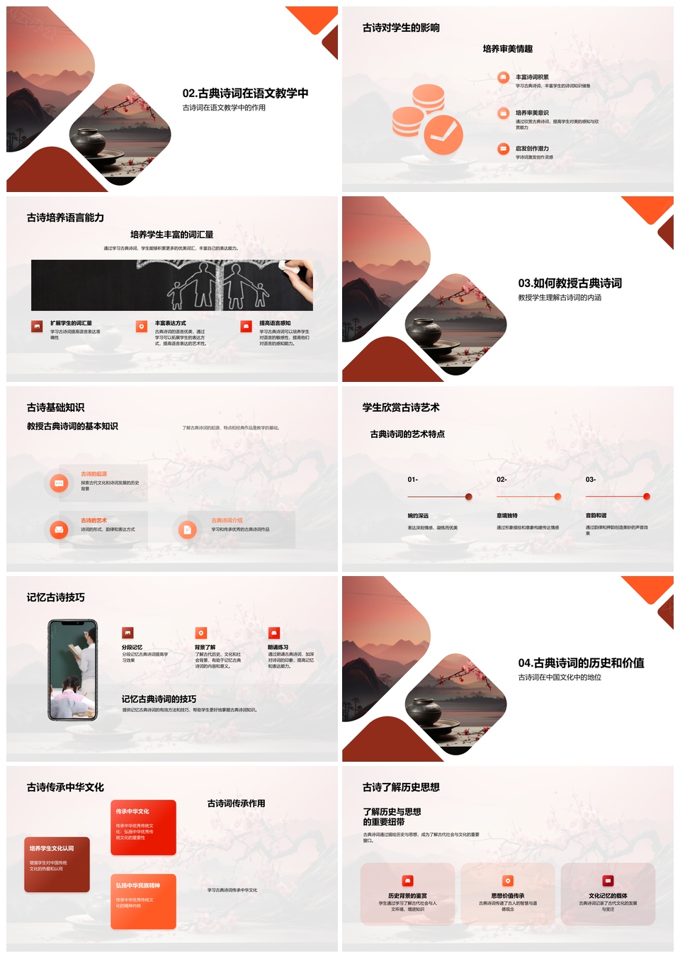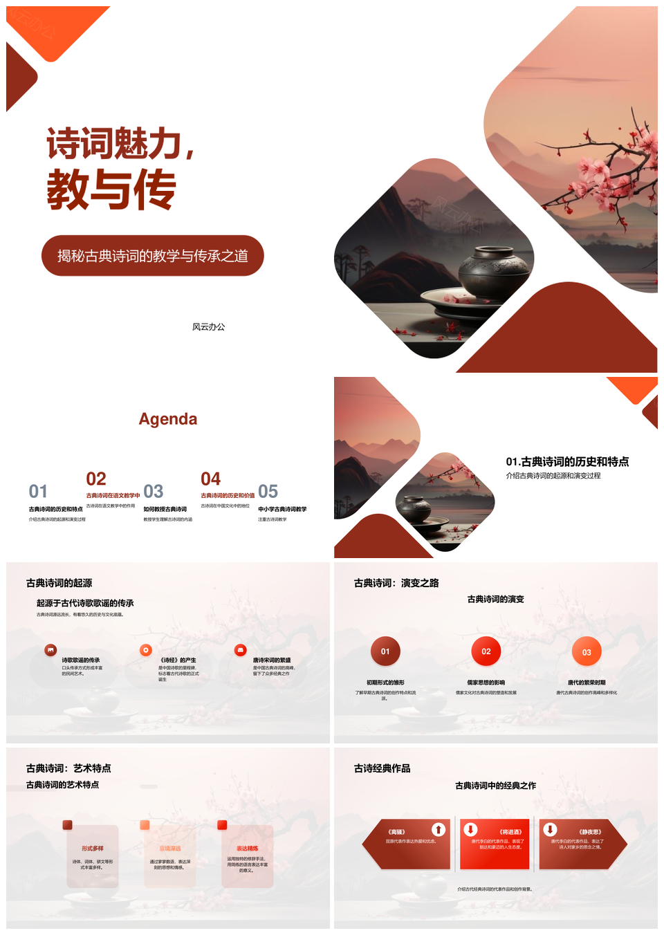 这是一张古典诗词教学传承中小学教师起源发展卷轴指南PPT模板,包含古典诗词、教学、传承、中小学、教师、起源、发展、卷轴、指南等主题内容,也可用作古典诗词教学传承、教学传承中小学教师、传承中小学教师起源、中小学教师起源发展、教师起源发展卷轴、起源发展卷轴指南、古典诗词传承发展、诗词教学卷轴指南、中小学教学发展卷轴、教师教学卷轴传承、古典诗词起源卷轴、诗词传承教师发展、教学发展卷轴指南、中小学教师指南、古典诗词教学卷轴等PPT场景使用。 风云办公提供的古典诗词教学传承中小学教师起源发展卷轴指南PPT模板,下载格式为pptx,一共21页,作品中文字及图均可以修改和编辑,图片更改请在作品中右键图片并更换,文字修改请直接点击文字进行修改。
