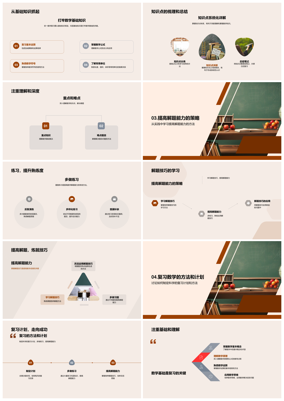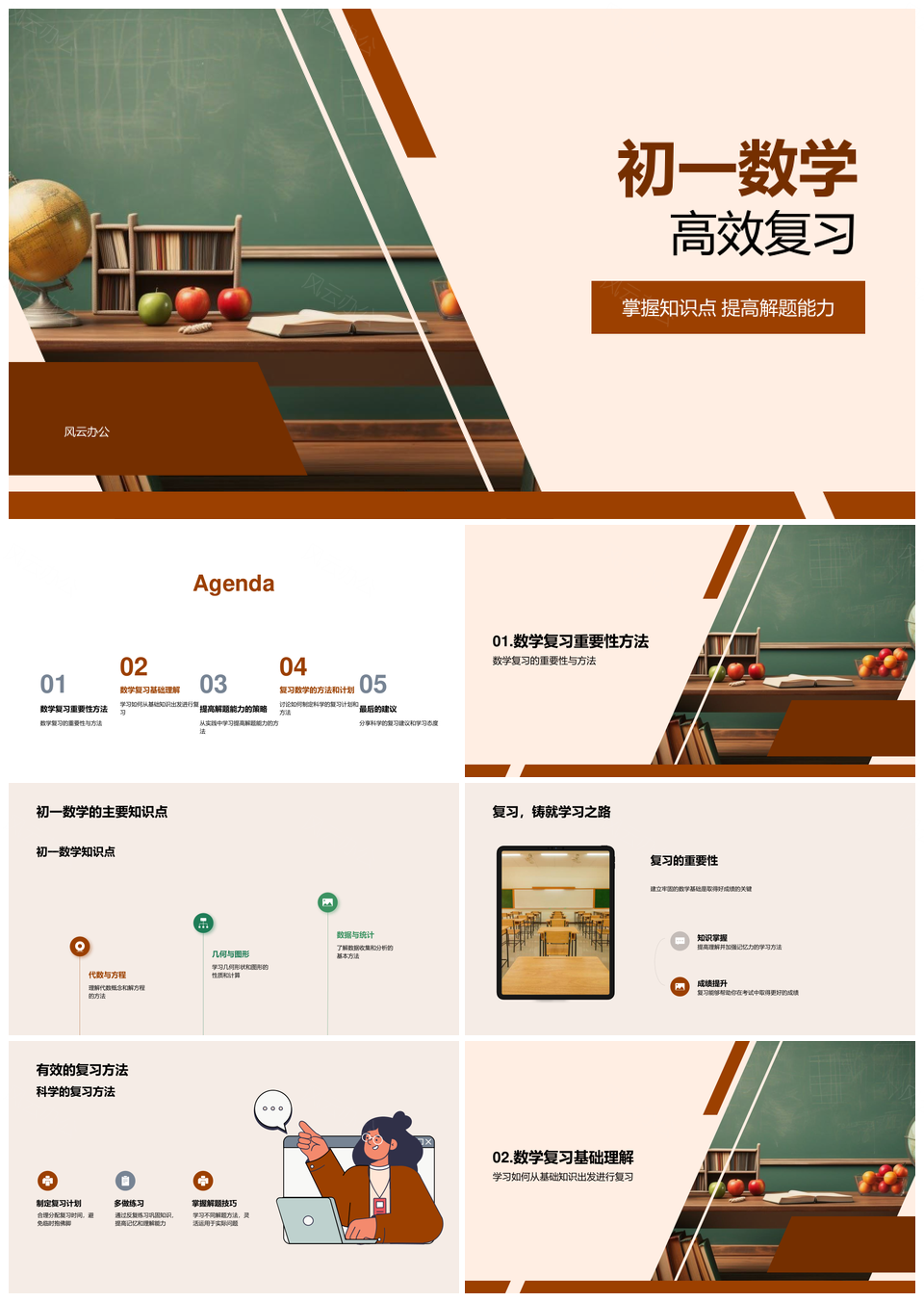 初一数学高效复习基础知识点与解题技巧PPT模板推荐