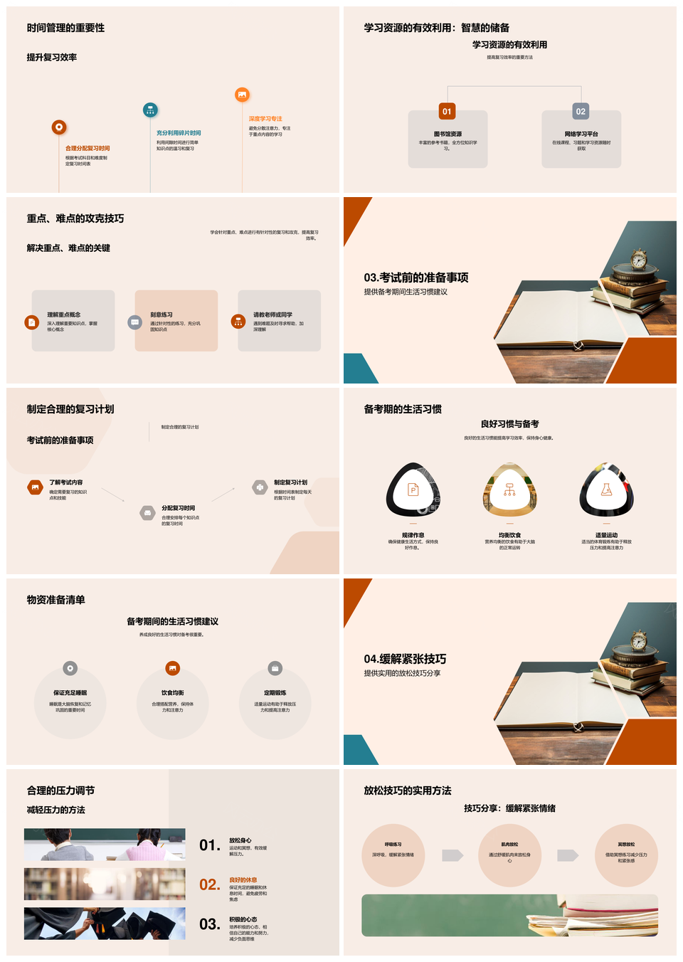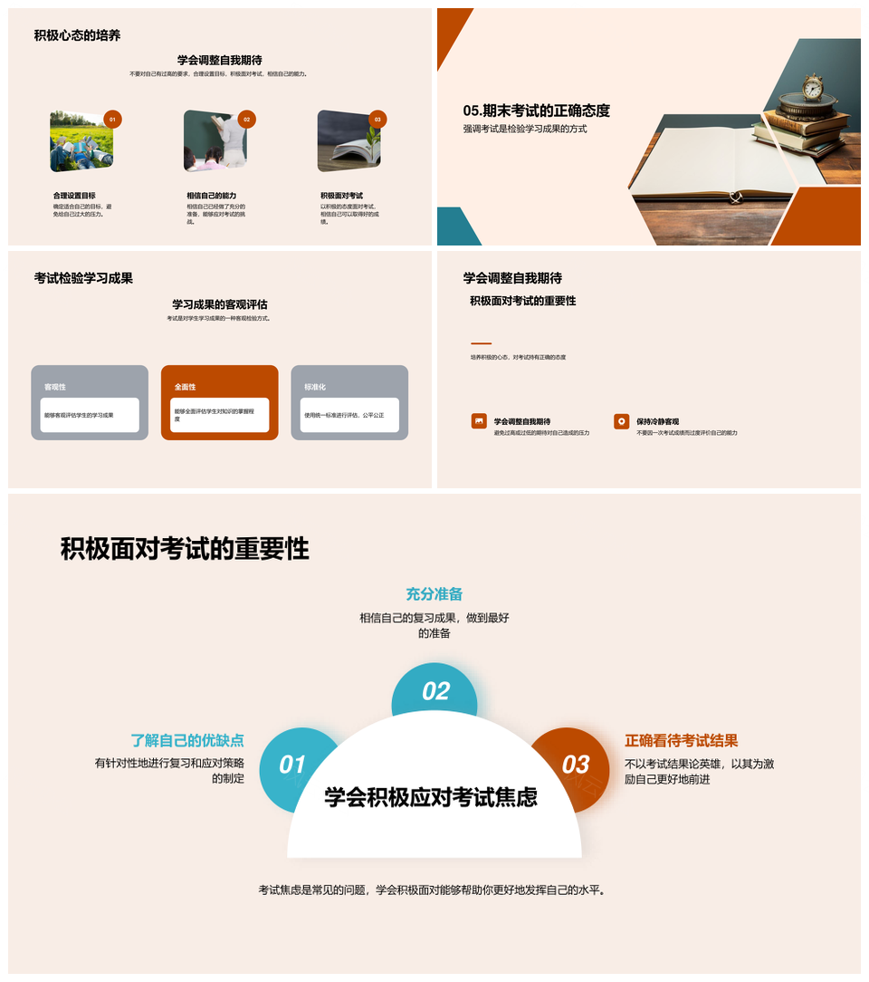 这是一张期末考试高效复习策略时间管理备书心态调整PPT模板,包含期末考试、高效复习策略、时间管理、备书、心态调整等主题内容,也可用作期末考试高效复习策略时间管理、期末考试高效复习策略、高效复习策略时间管理、策略时间管理备书、时间管理备书心态调整、期末考试高效复习、高效复习策略、策略时间管理、时间管理备书、备书心态调整、期末考试时间管理、高效复习时间管理、时间管理心态调整、期末考试心态调整、高效复习心态调整等PPT场景使用。 风云办公提供的期末考试高效复习策略时间管理备书心态调整PPT模板,下载格式为pptx,一共23页,作品中文字及图均可以修改和编辑,图片更改请在作品中右键图片并更换,文字修改请直接点击文字进行修改。