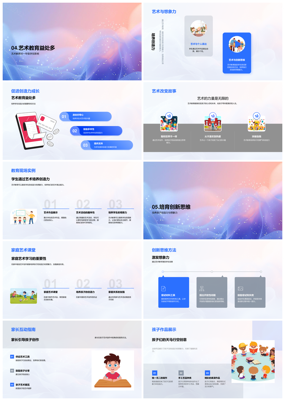 这是一张一年级艺术课堂欣赏创作培养素养创造力PPT模板,包含一年级、艺术课堂、欣赏、创作、培养、素养、创造力等主题内容,也可用作一年级艺术课堂欣赏、艺术课堂欣赏创作、课堂欣赏创作培养、欣赏创作培养素养、创作培养素养创造力、一年级艺术课堂、艺术课堂欣赏、课堂欣赏创作、欣赏创作培养、创作培养素养、培养素养创造力、一年级艺术、艺术课堂、课堂欣赏、欣赏创作等PPT场景使用。 风云办公提供的一年级艺术课堂欣赏创作培养素养创造力PPT模板,下载格式为pptx,一共28页,作品中文字及图均可以修改和编辑,图片更改请在作品中右键图片并更换,文字修改请直接点击文字进行修改。
