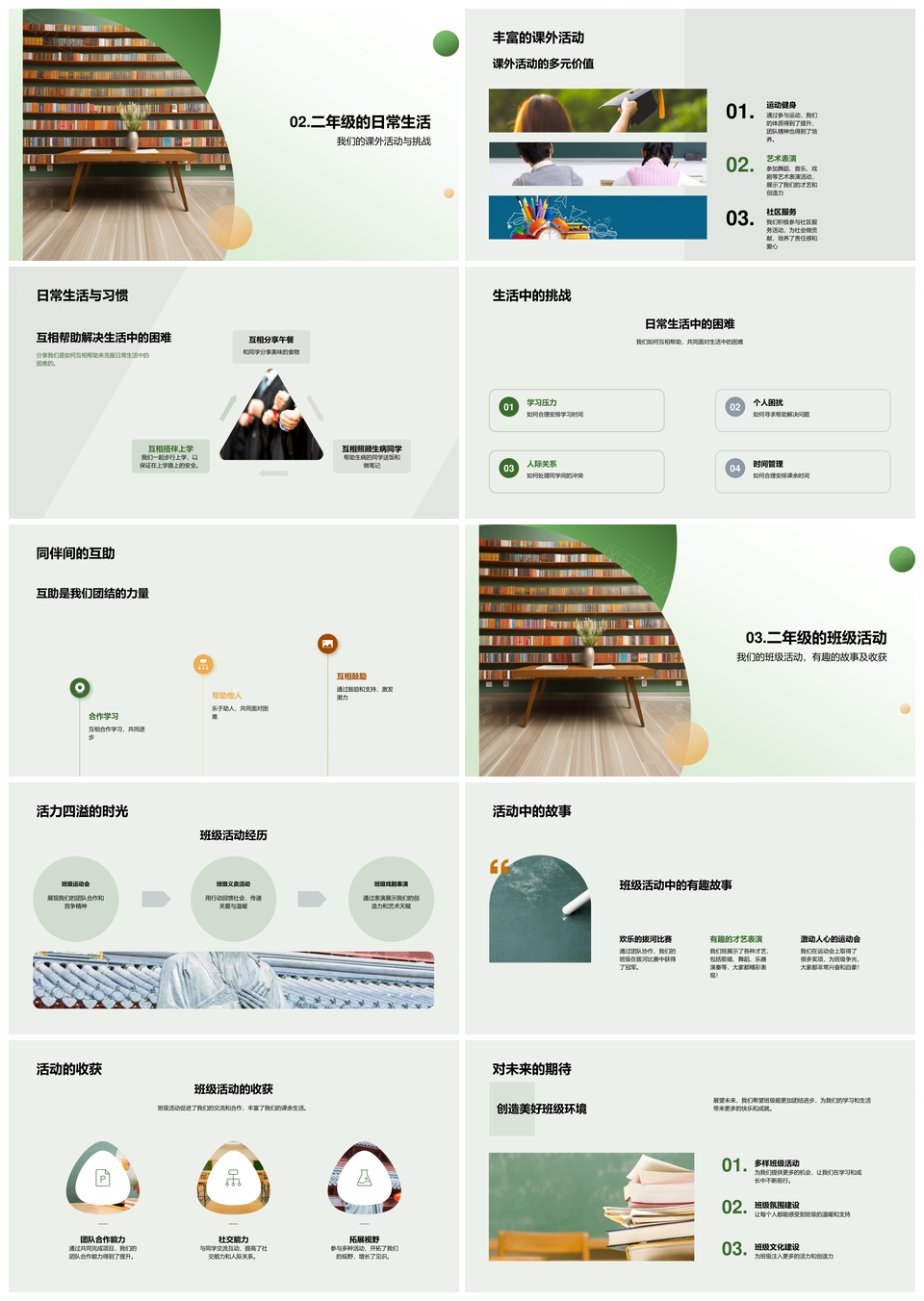 二年级勤学克难展成果多彩活动共筑班风PPT模板推荐