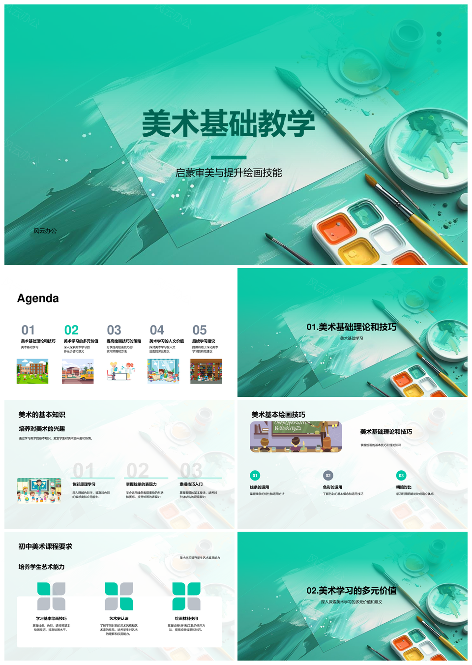 美术基础教学绘画技巧审美观察创新手工色彩构图PPT模板