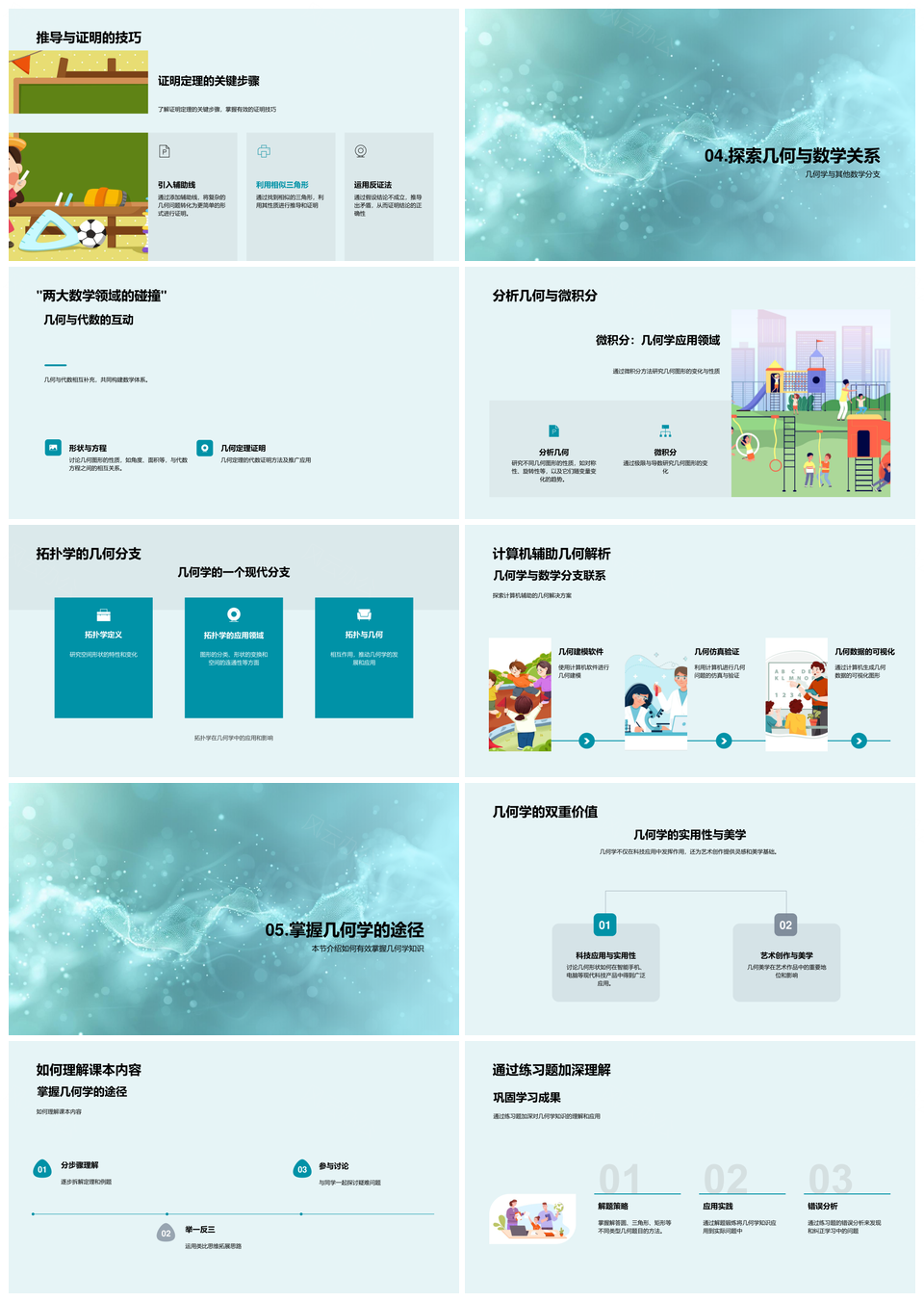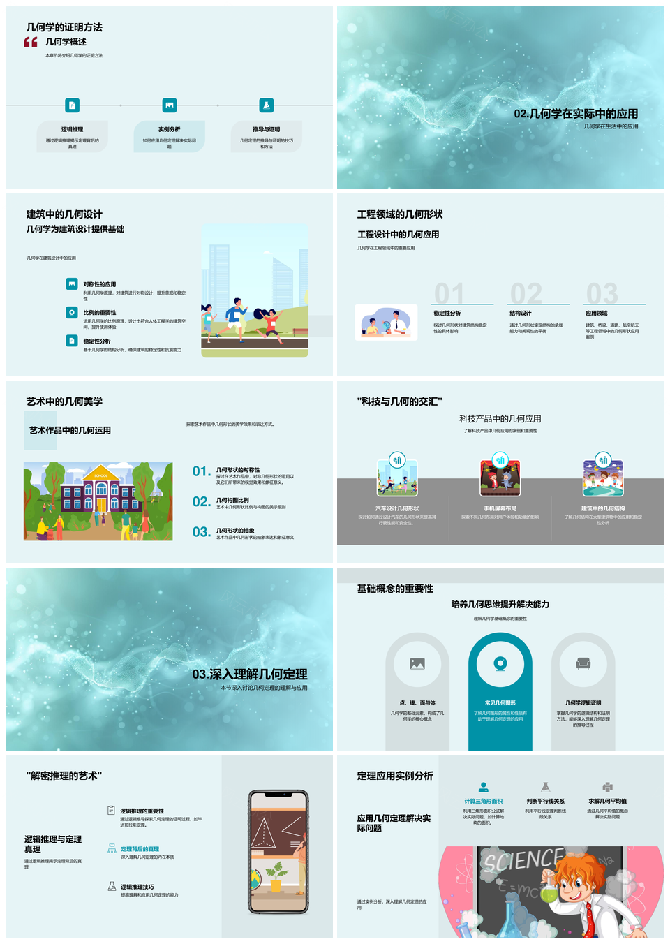 2025几何学图形证明方法设计艺术科技应用PPT模板推荐