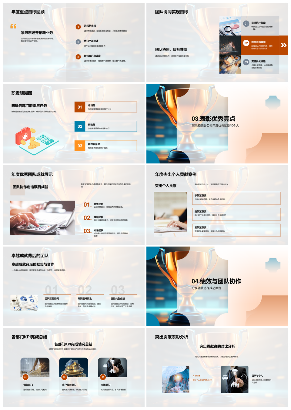 高效团队协作文化聚力年度目标绩效表彰达成PPT模板推荐