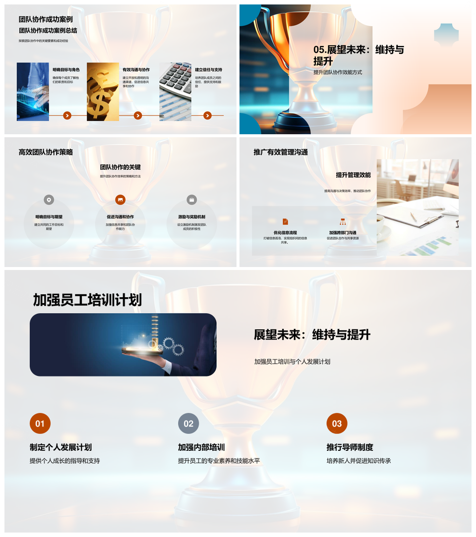 这是一张高效团队协作文化聚力年度目标绩效表彰达成PPT模板,包含高效团队、协作文化、聚力、年度目标、绩效、表彰、达成等主题内容,也可用作高效团队协作文化、团队协作文化聚力、高效团队协作、团队协作文化、协作文化聚力、文化聚力年度目标、聚力年度目标绩效、年度目标绩效表彰、目标绩效表彰达成、高效团队协作文化聚力、团队协作文化聚力年度、年度目标绩效表彰达成、高效团队协作文化年度目标、协作文化聚力年度目标绩效、聚力年度目标绩效表彰等PPT场景使用。 风云办公提供的高效团队协作文化聚力年度目标绩效表彰达成PPT模板,下载格式为pptx,一共23页,作品中文字及图均可以修改和编辑,图片更改请在作品中右键图片并更换,文字修改请直接点击文字进行修改。