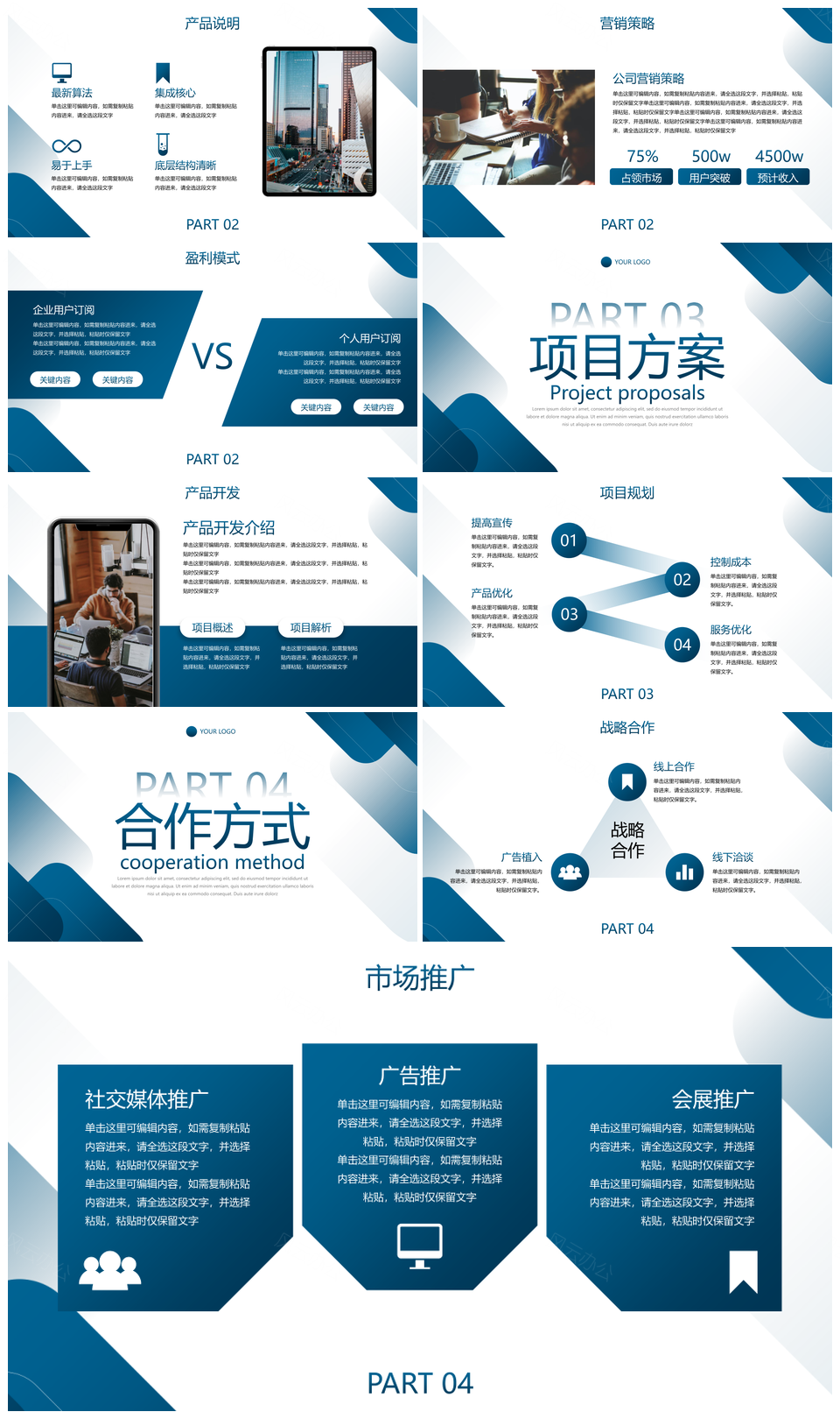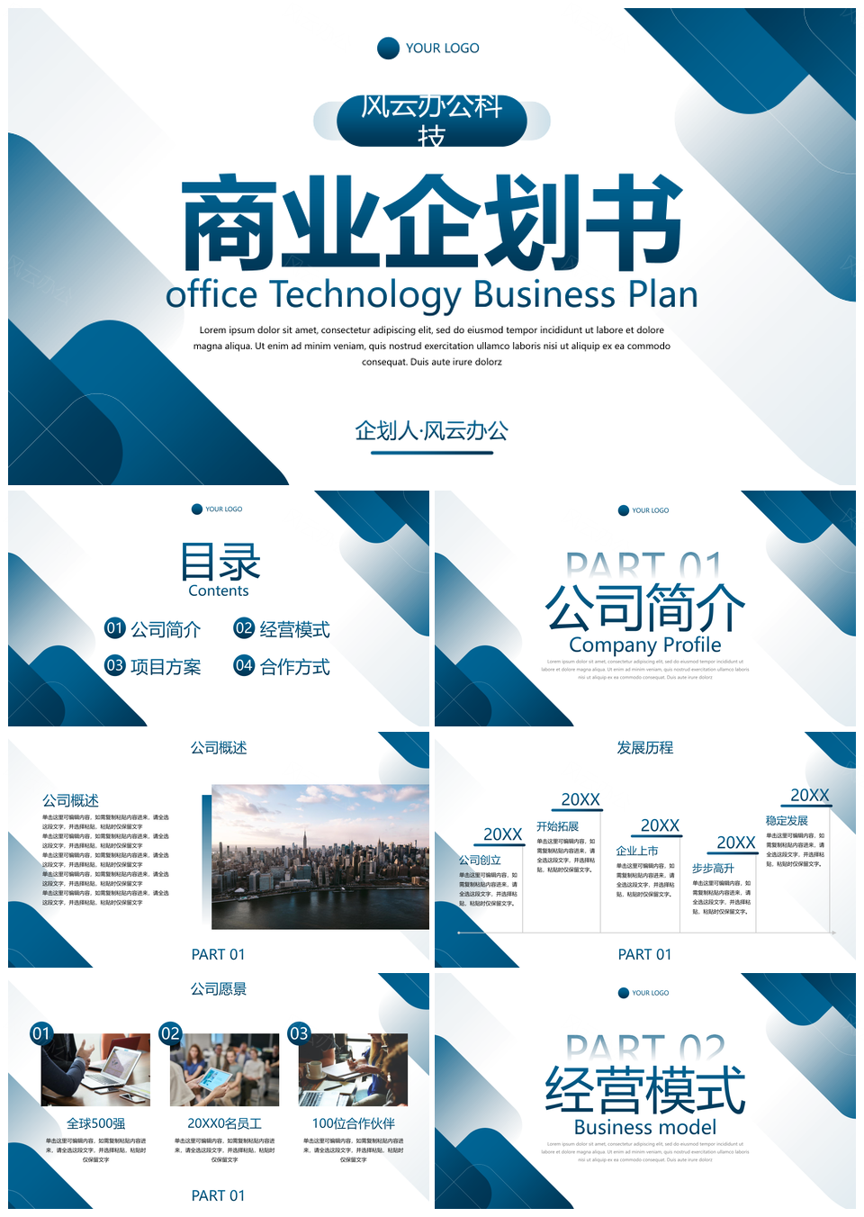 风云办公提供的高级现代几何简约品牌商业计划书PPT模板,下载格式为pptx,一共17页,作品中文字及图均可以修改和编辑,图片更改请在作品中右键图片并更换,文字修改请直接点击文字进行修改。