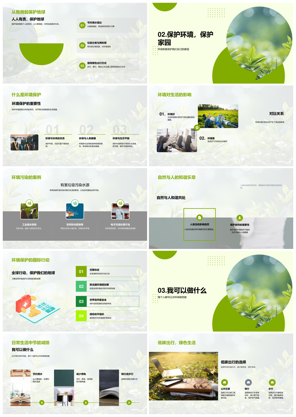 风云办公提供的绿色生活环保教育共建低碳地球家园PPT模板,下载格式为pptx,一共33页,作品中文字及图均可以修改和编辑,图片更改请在作品中右键图片并更换,文字修改请直接点击文字进行修改。