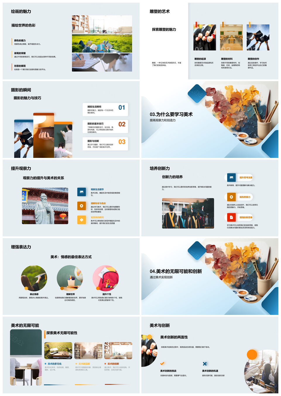 小艺术家美术潜能教育美术馆书海童真创作画笔调色PPT模板