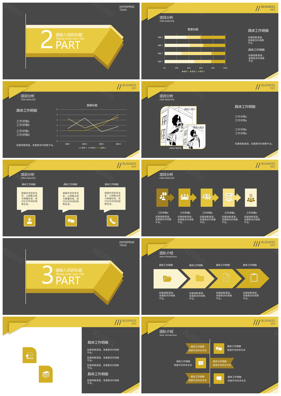 2025黄色黄黑扁平化简约风格职场会议商务汇报PPT模板