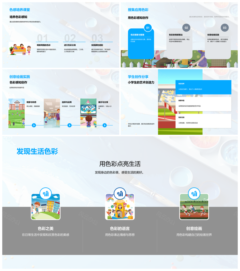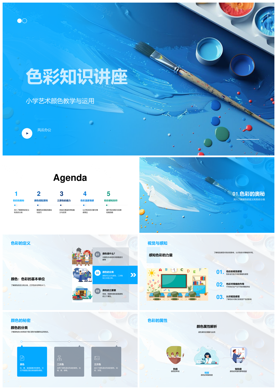风云办公提供的小学艺术色彩知识教学分类属性搭配PPT模板,下载格式为pptx,一共33页,作品中文字及图均可以修改和编辑,图片更改请在作品中右键图片并更换,文字修改请直接点击文字进行修改。