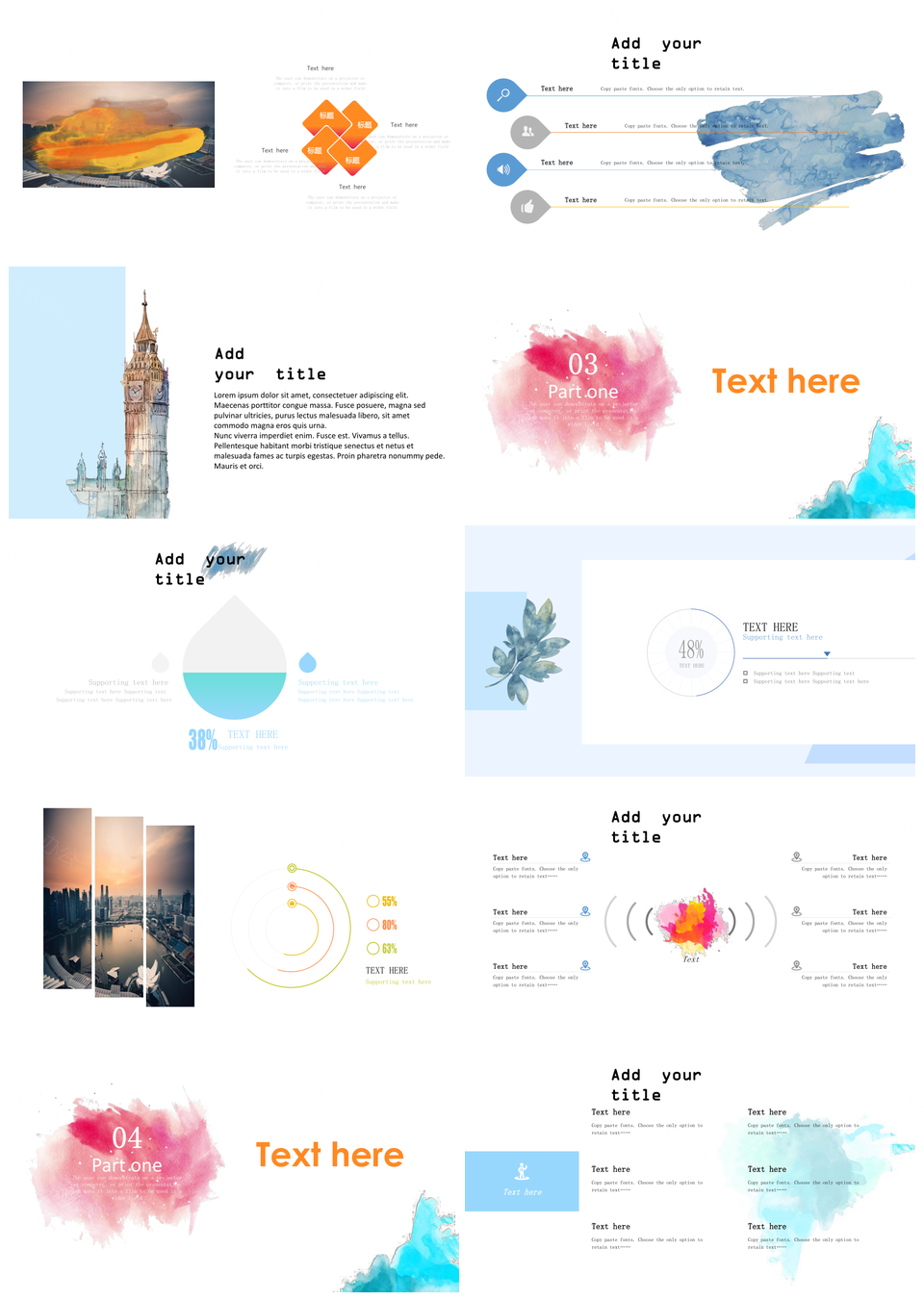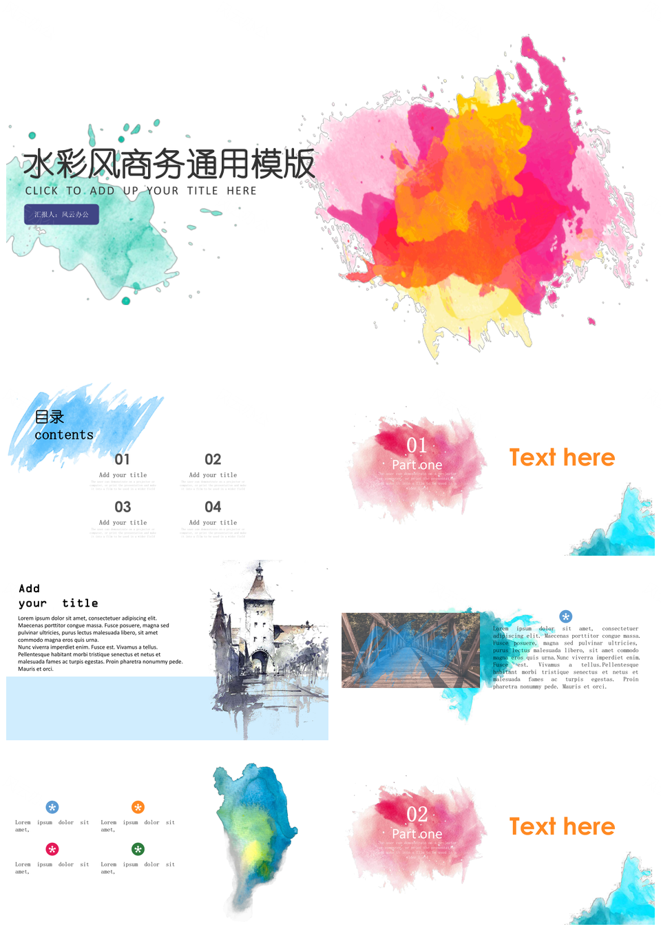 时尚水彩风商务PPT