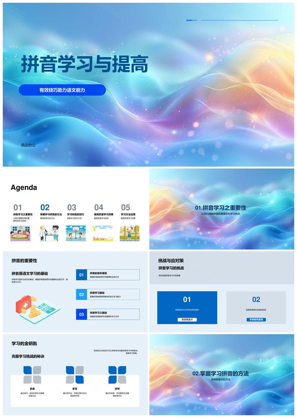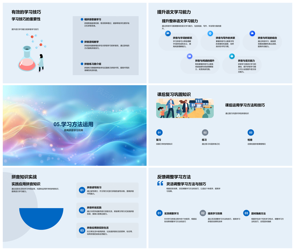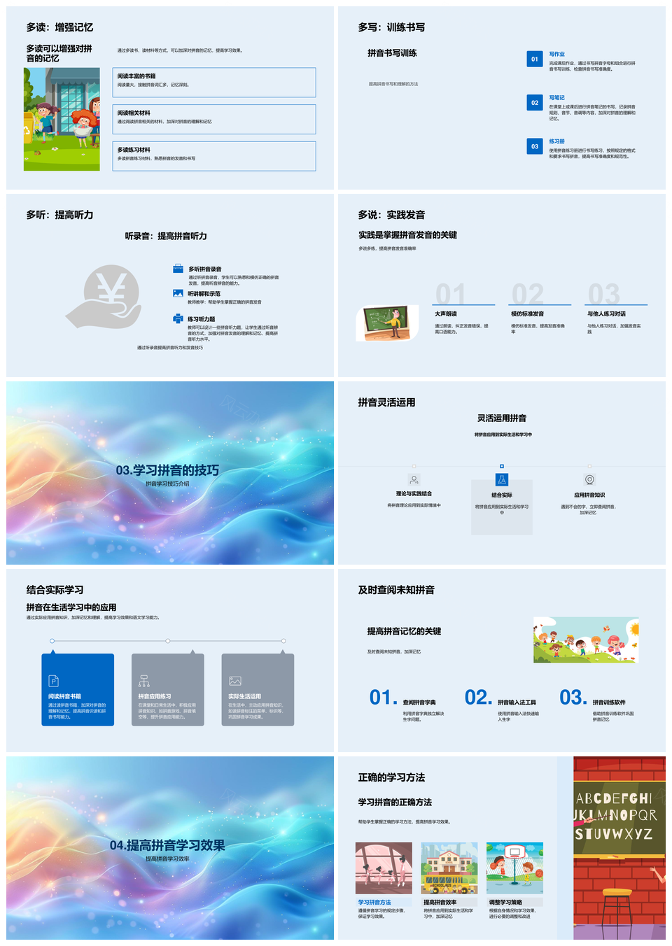 拼音学习高效提升语文能力攻克挑战多读多写多听PPT模板推荐