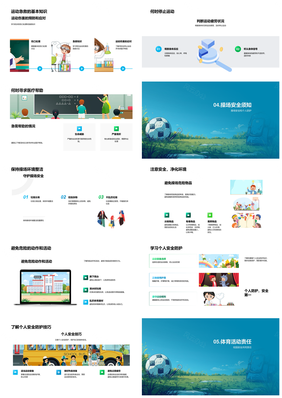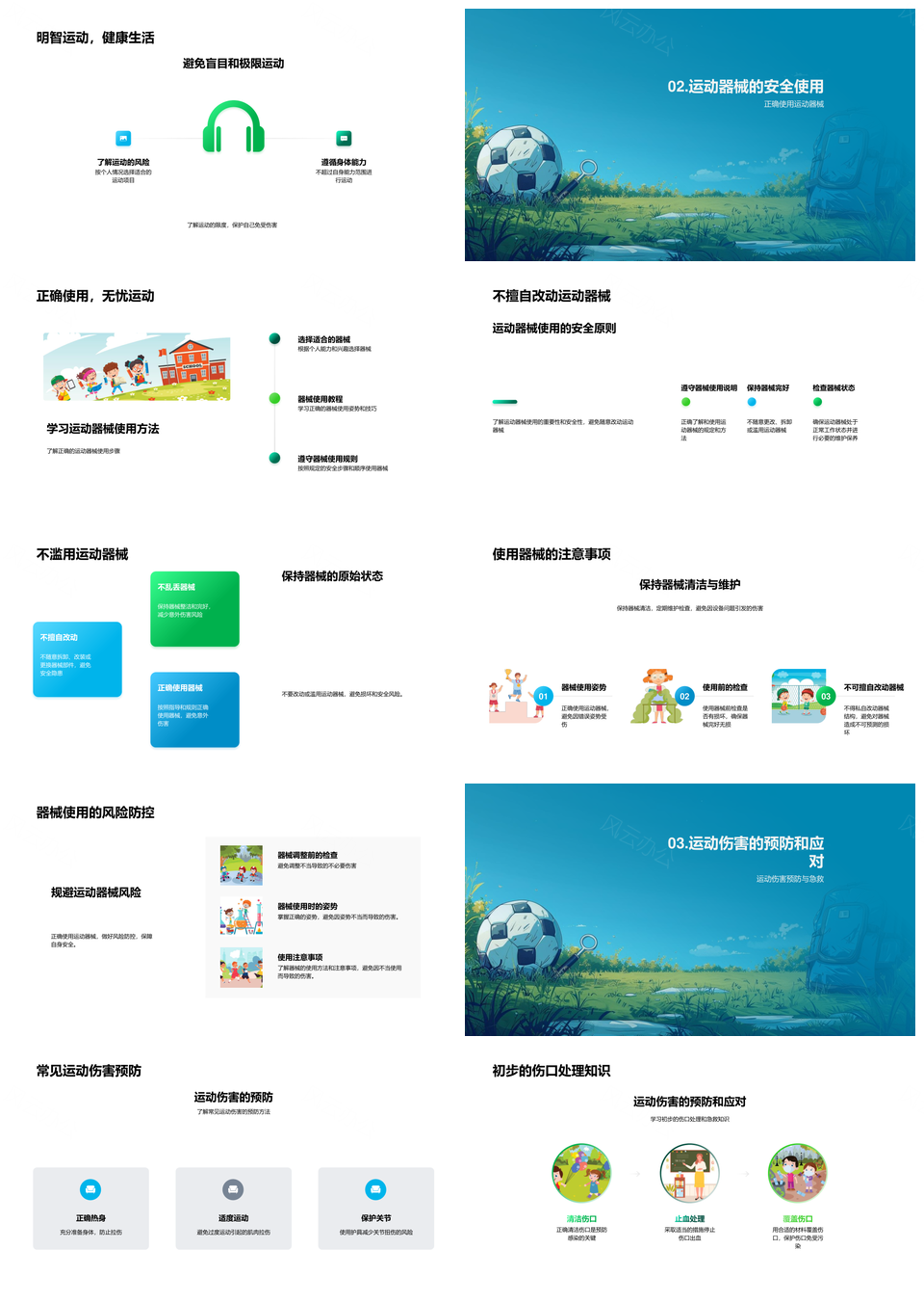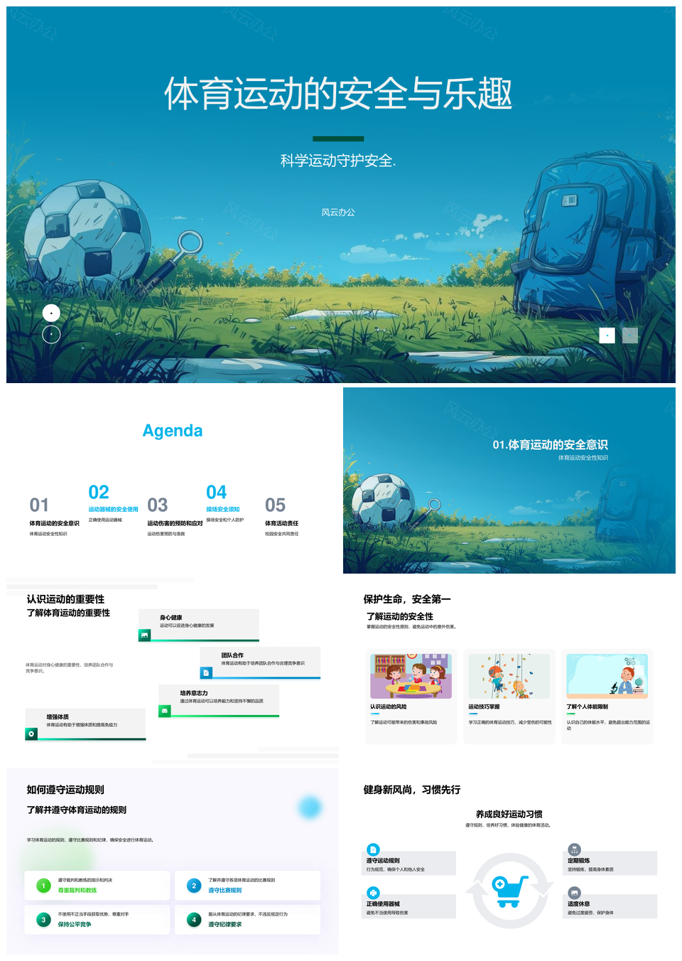 风云办公提供的科学运动安全守护操场规则器械使用PPT模板,下载格式为pptx,一共33页,作品中文字及图均可以修改和编辑,图片更改请在作品中右键图片并更换,文字修改请直接点击文字进行修改。