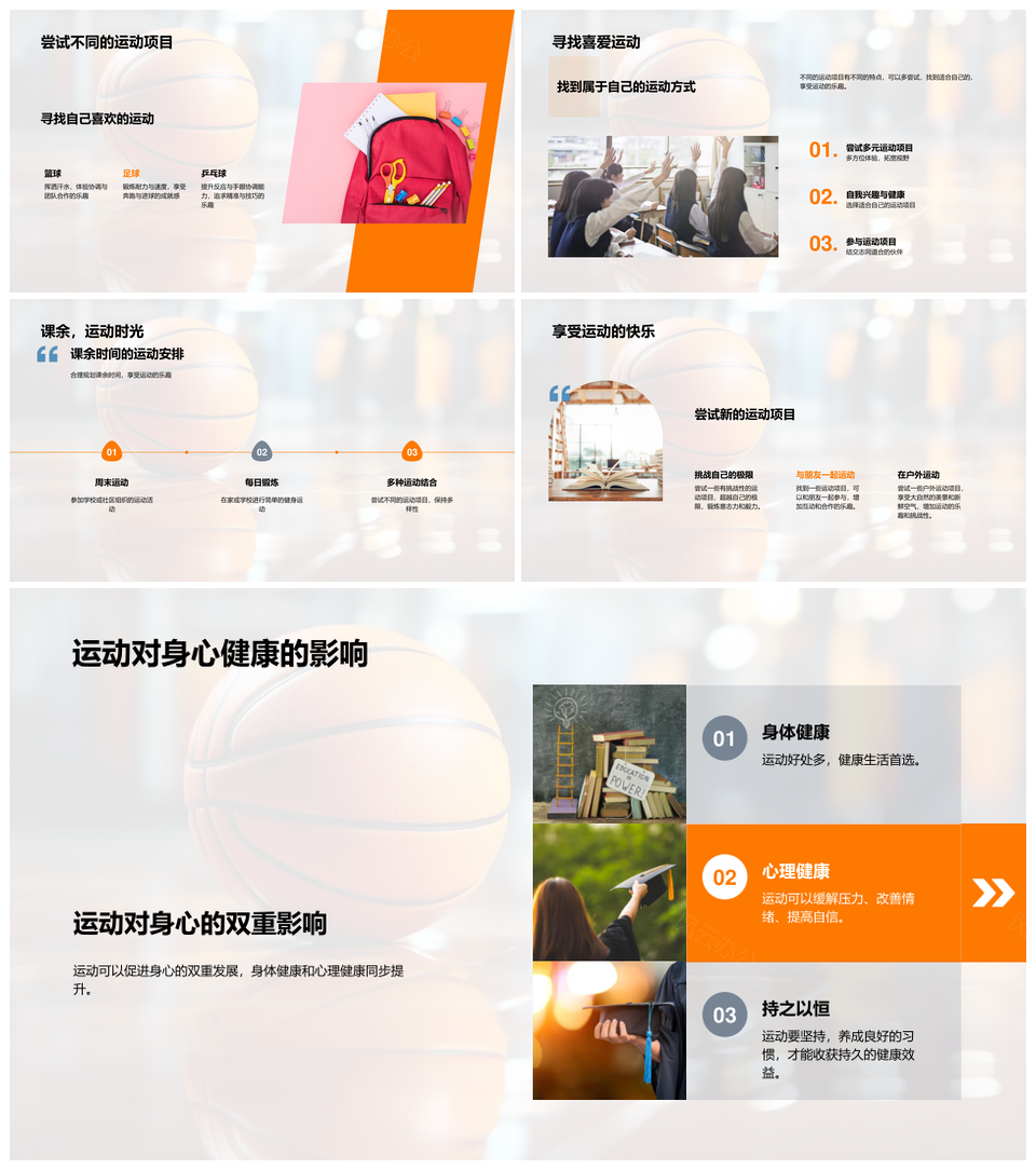 体育课程篮球足球排球运动技能团队协作健康压力探索PPT模板