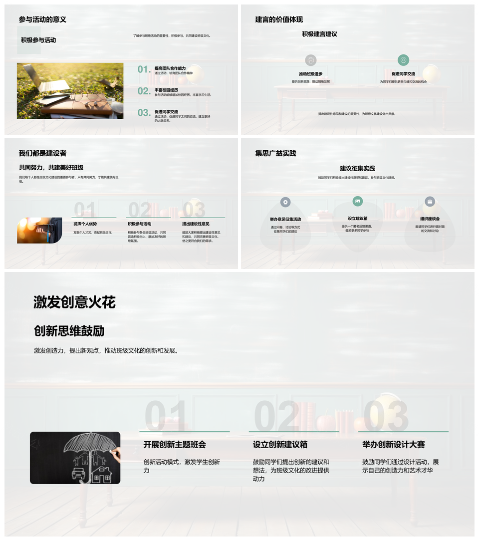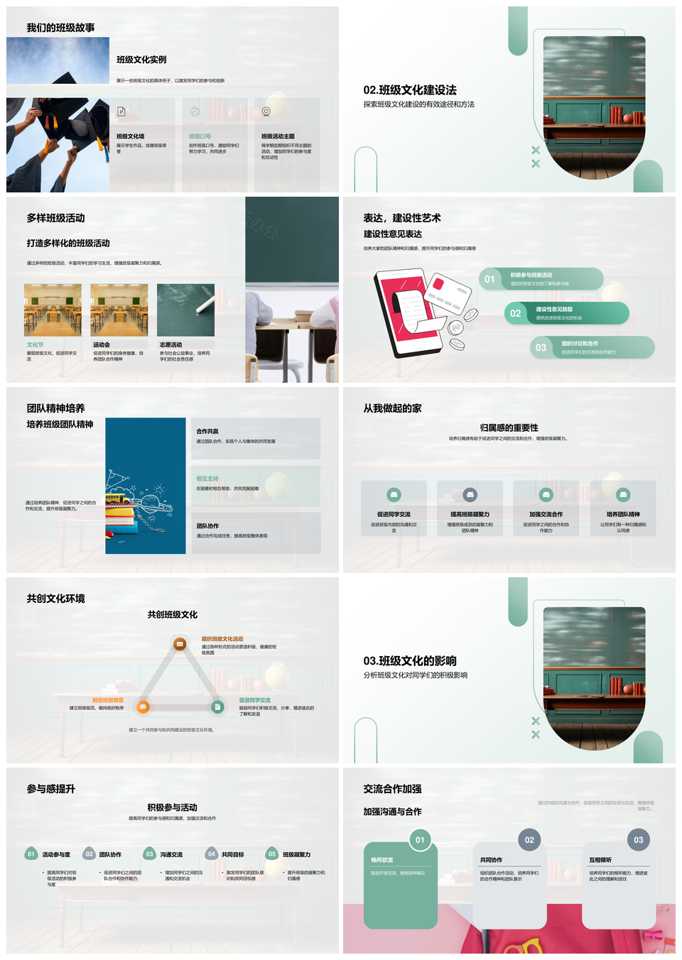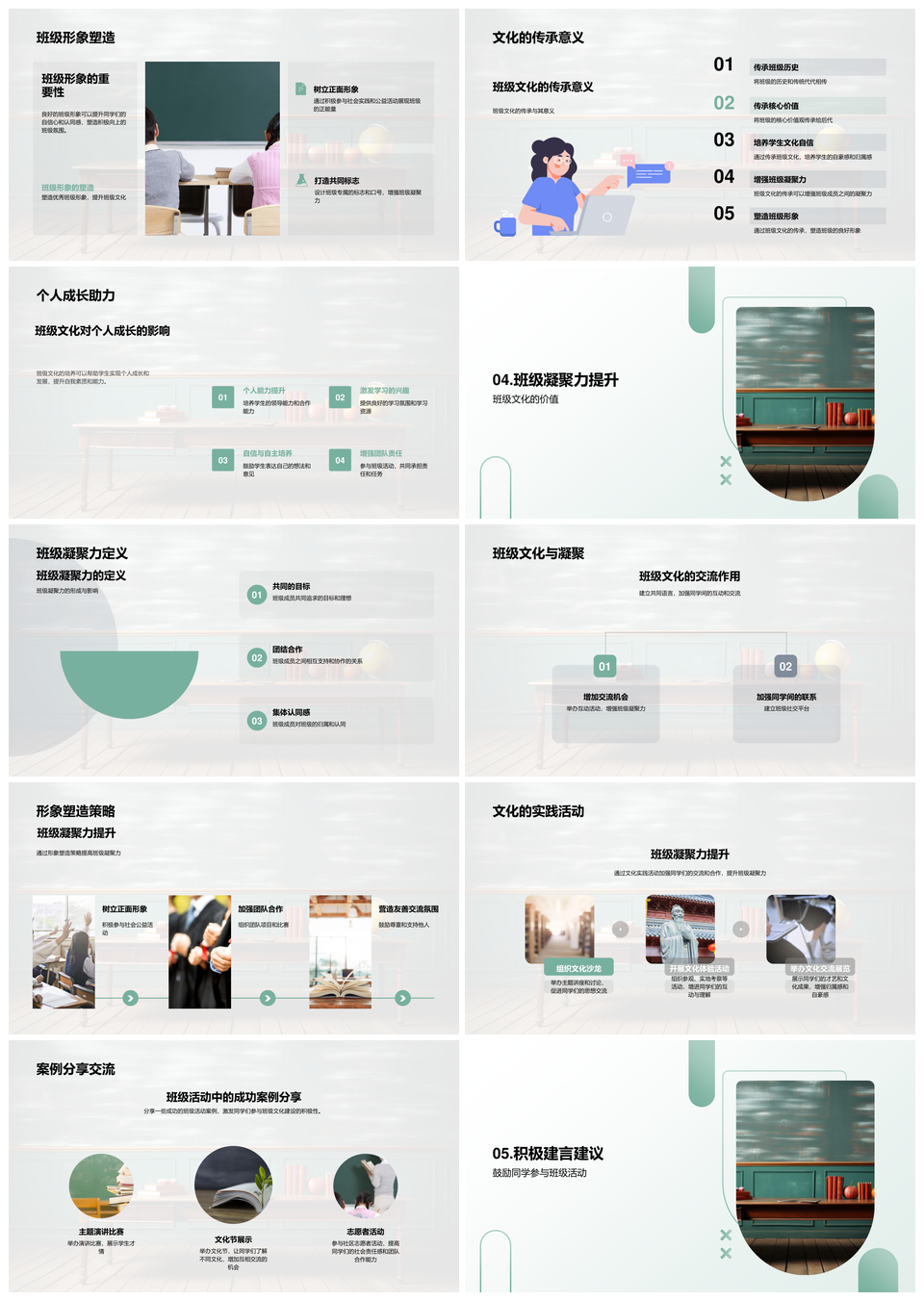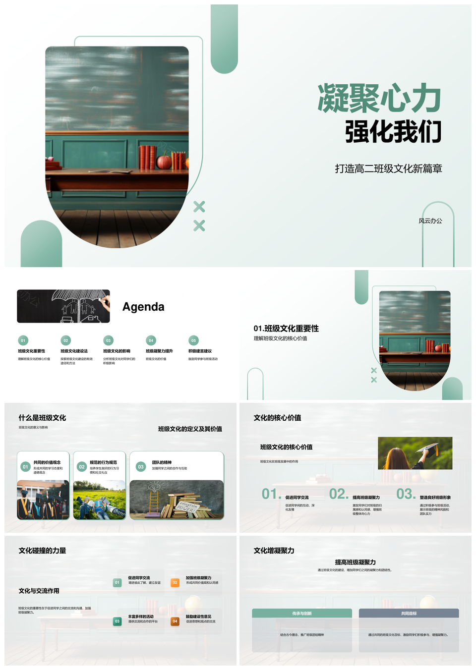 风云办公提供的班级文化建设凝聚团队精神活动PPT模板,下载格式为pptx,一共33页,作品中文字及图均可以修改和编辑,图片更改请在作品中右键图片并更换,文字修改请直接点击文字进行修改。