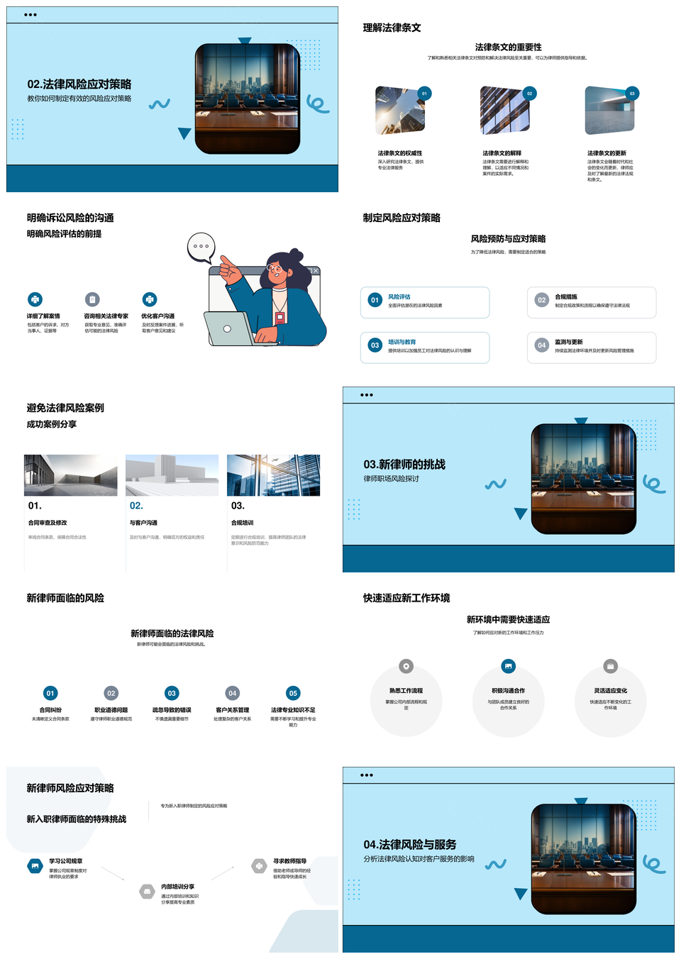 这是一张新律师诉讼合同风险管控法槌指引服务质效PPT模板,包含新律师、诉讼、合同、风险、管控、法槌、指引、服务、质效等主题内容,也可用作新律师诉讼合同风险管控、诉讼合同风险管控法槌、合同风险管控法槌指引、风险管控法槌指引服务质效、新律师诉讼合同、诉讼合同风险管控、合同风险管控法槌、风险管控法槌指引、法槌指引服务质效、新律师诉讼、诉讼合同、合同风险管控、风险管控法槌、法槌指引、指引服务质效等PPT场景使用。 风云办公提供的新律师诉讼合同风险管控法槌指引服务质效PPT模板,下载格式为pptx,一共25页,作品中文字及图均可以修改和编辑,图片更改请在作品中右键图片并更换,文字修改请直接点击文字进行修改。