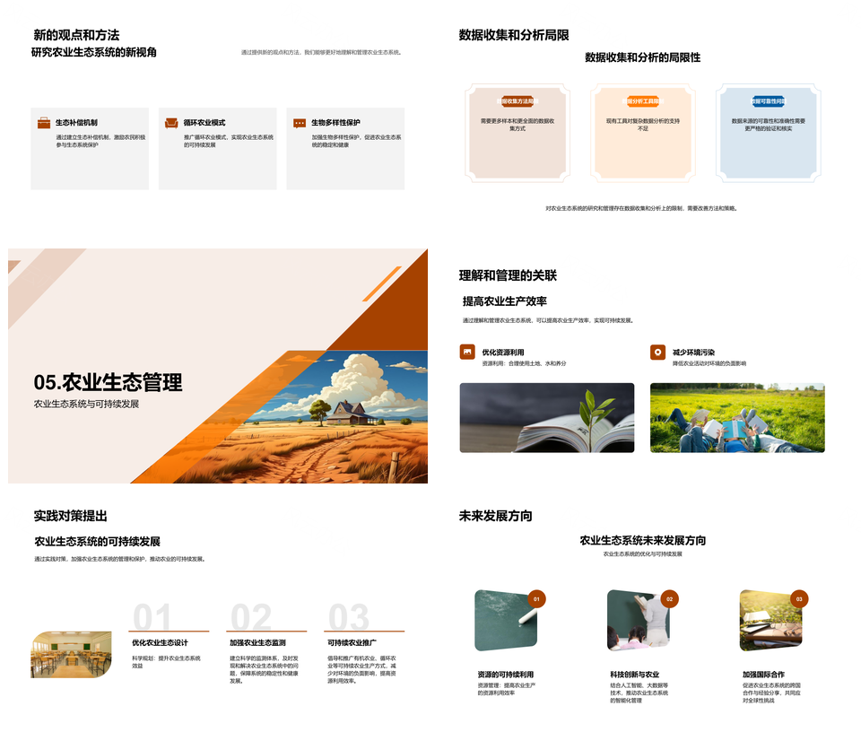 这是一张农业生态系统组成管理与发展粮安环保PPT模板,包含农业、生态系统、组成、管理、发展、粮安、环保等主题内容,也可用作农业生态系统组成管理、生态系统组成管理发展、农业生态系统管理发展、管理发展粮安环保、农业管理发展粮安、粮安环保组成管理、生态系统管理发展、农业生态系统组成、组成管理发展、粮安环保管理、农业生态系统、生态系统组成、组成管理、管理发展、发展粮安等PPT场景使用。
