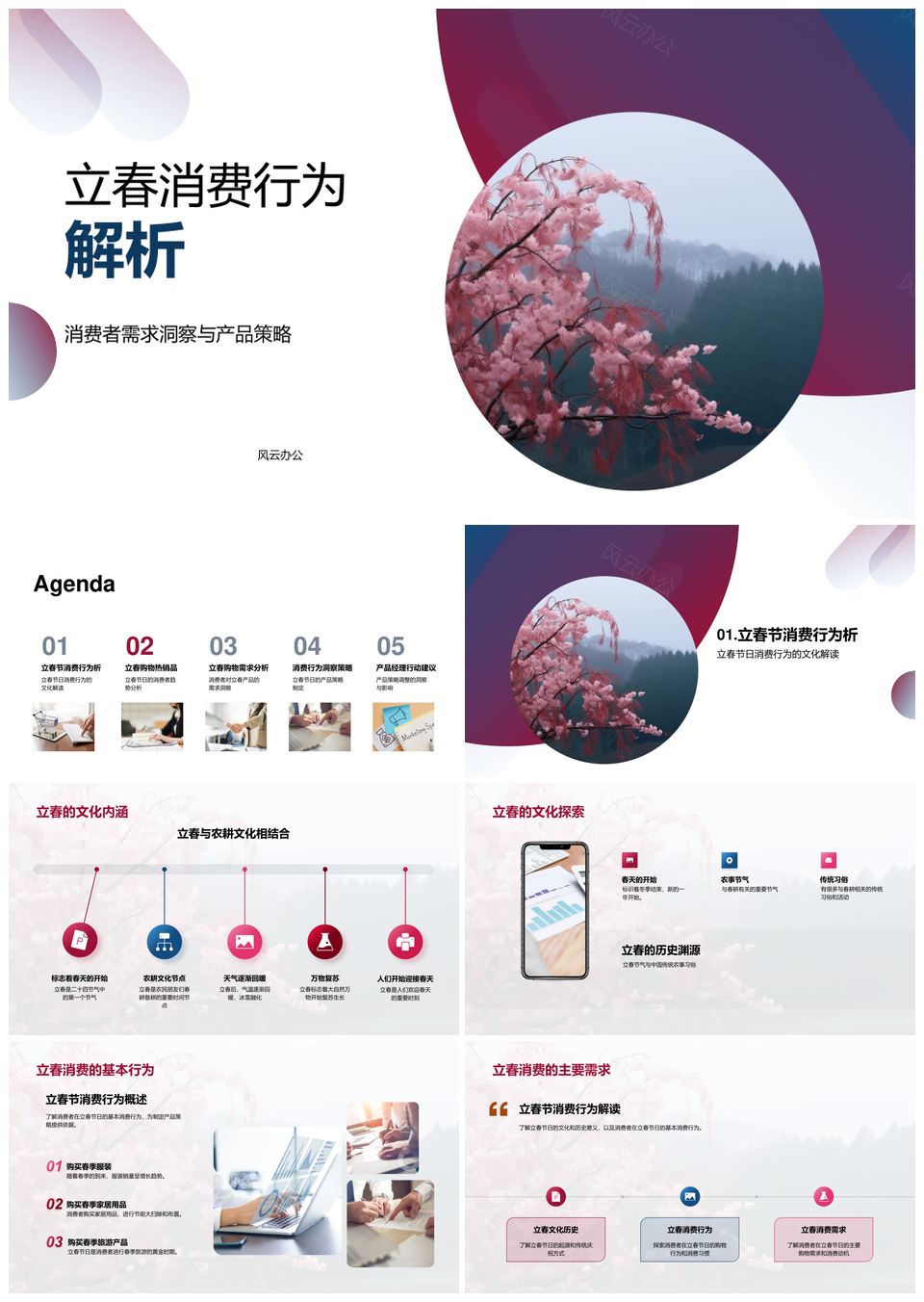 风云办公提供的立春消费需求洞察与樱花产品策略解析PPT模板,下载格式为pptx,一共25页,作品中文字及图均可以修改和编辑,图片更改请在作品中右键图片并更换,文字修改请直接点击文字进行修改。