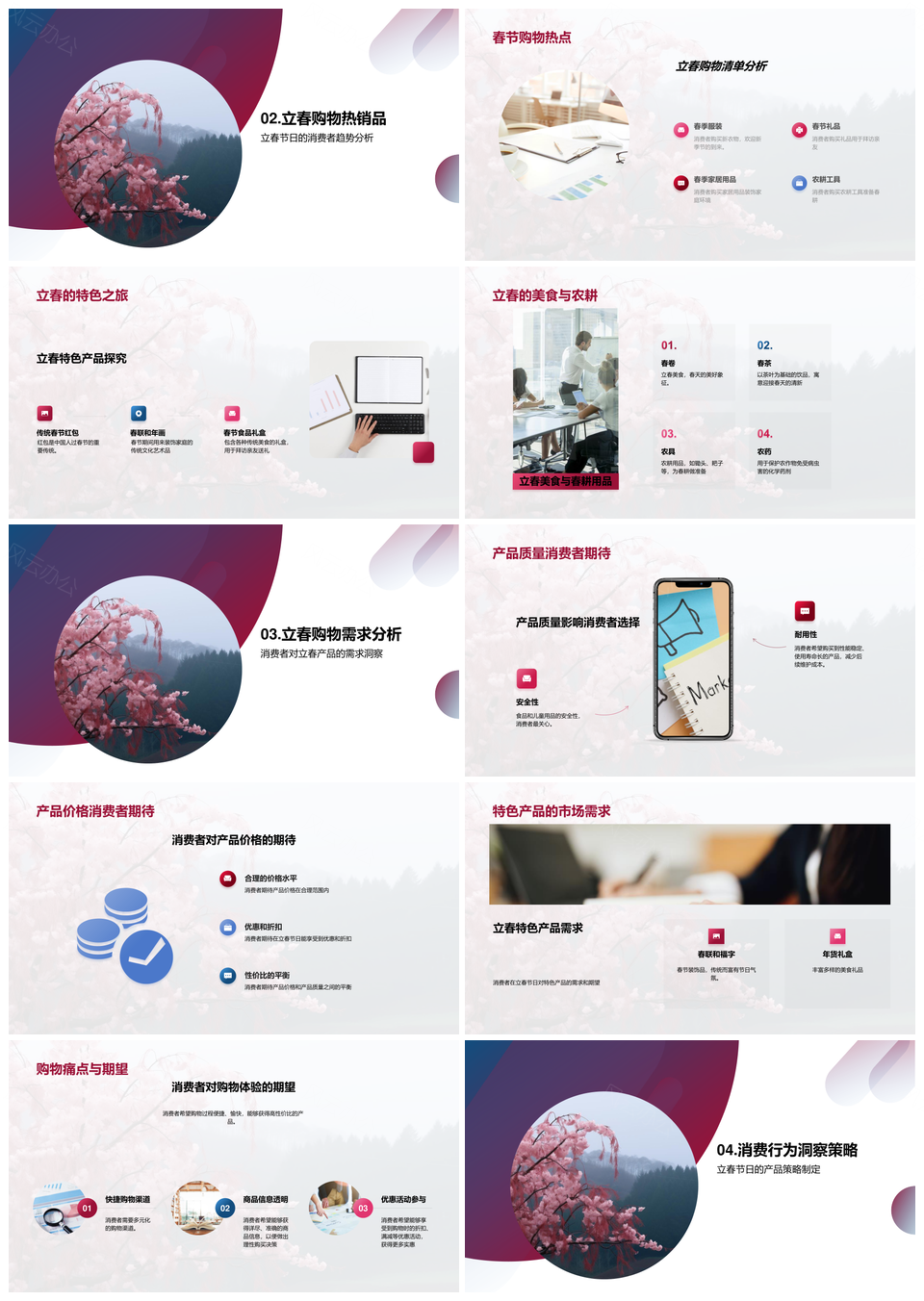 这是一张立春消费需求洞察与樱花产品策略解析PPT模板,包含立春、消费需求、洞察、樱花、产品、策略、解析等主题内容,也可用作立春消费需求樱花产品策略、消费需求洞察樱花产品策略、立春樱花产品策略解析、洞察樱花产品策略解析、立春消费需求洞察、消费需求洞察樱花、樱花产品策略解析、立春樱花产品策略、消费需求樱花产品策略、立春消费需求解析、立春消费需求、消费需求洞察、樱花产品策略、产品策略解析、立春樱花等PPT场景使用。