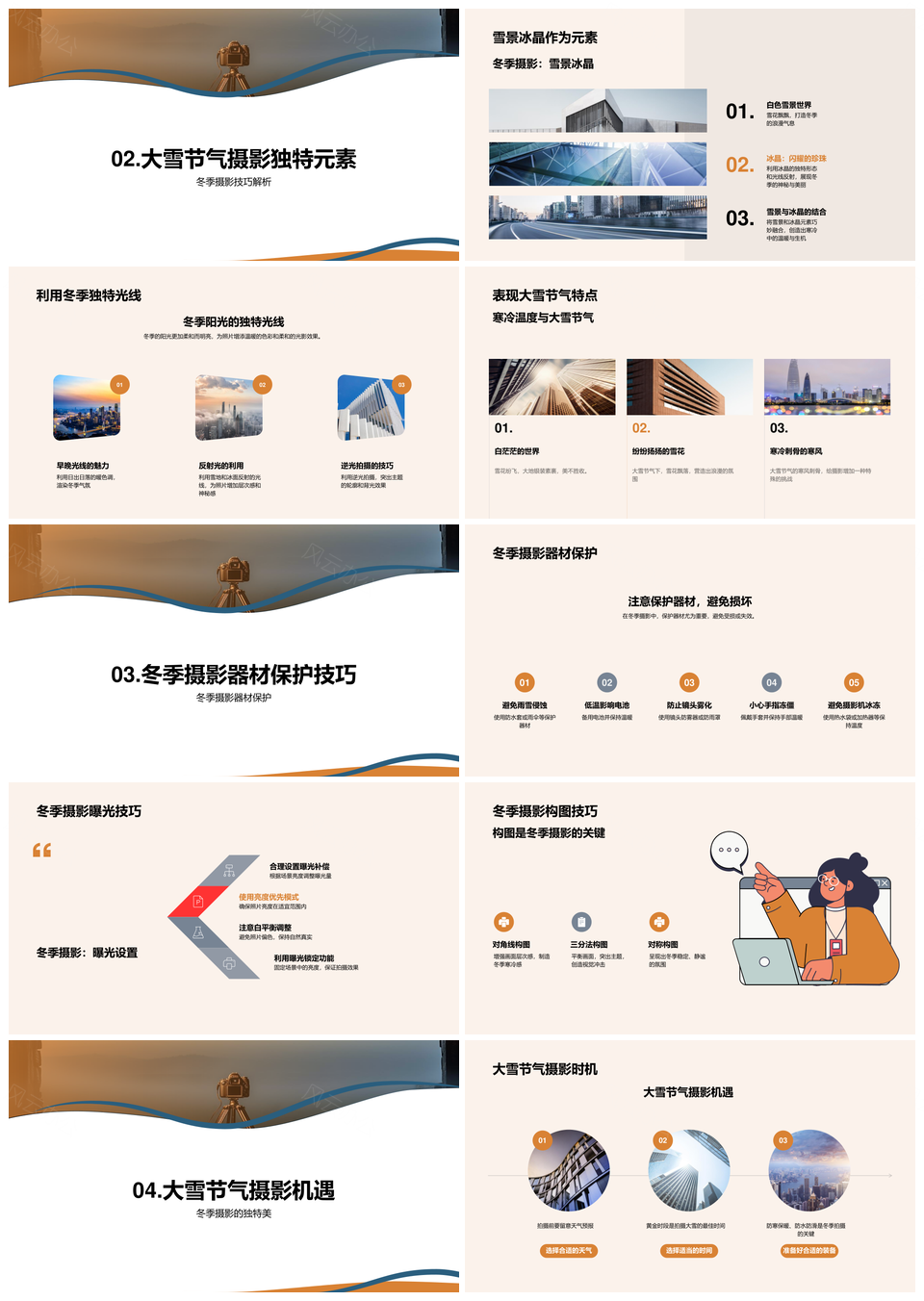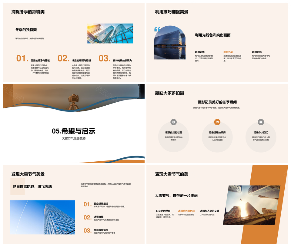 风云办公提供的大雪摄影雪景冰晶光线构图器材保护PPT模板,下载格式为pptx,一共24页,作品中文字及图均可以修改和编辑,图片更改请在作品中右键图片并更换,文字修改请直接点击文字进行修改。