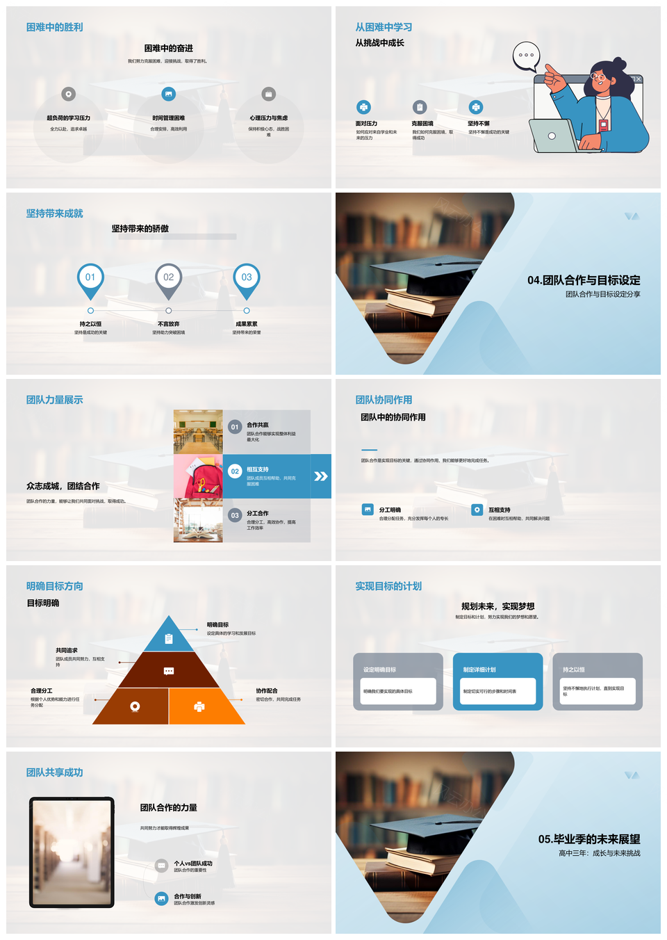 高中蜕变路毕业礼师导成功挑战毅行团队帽扬PPT模板
