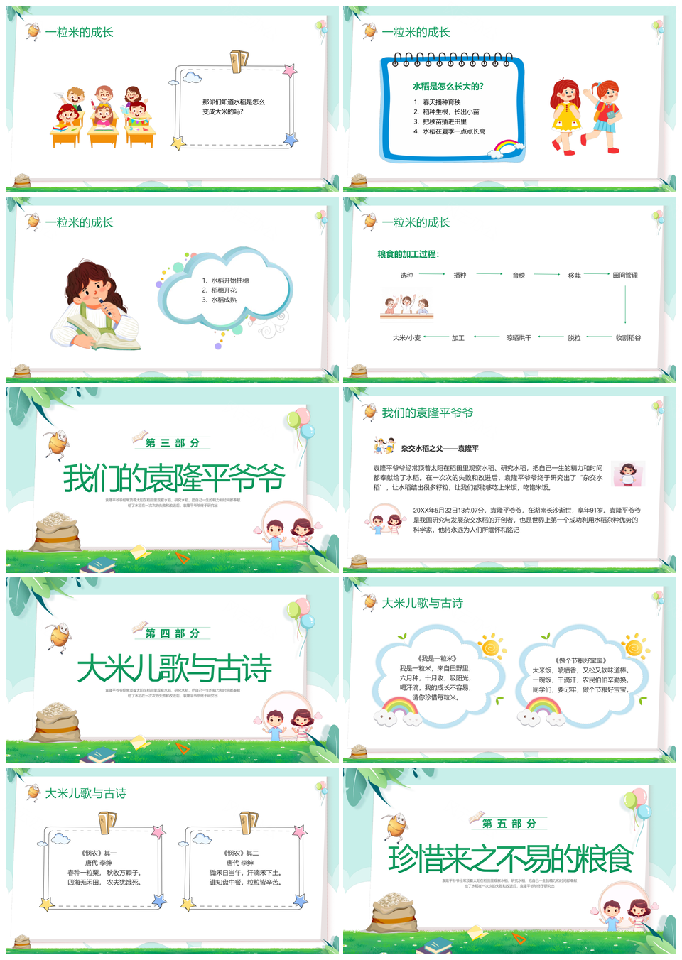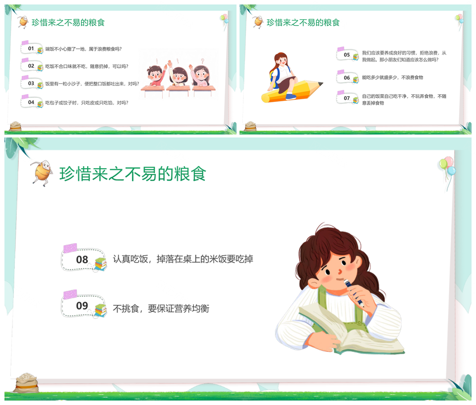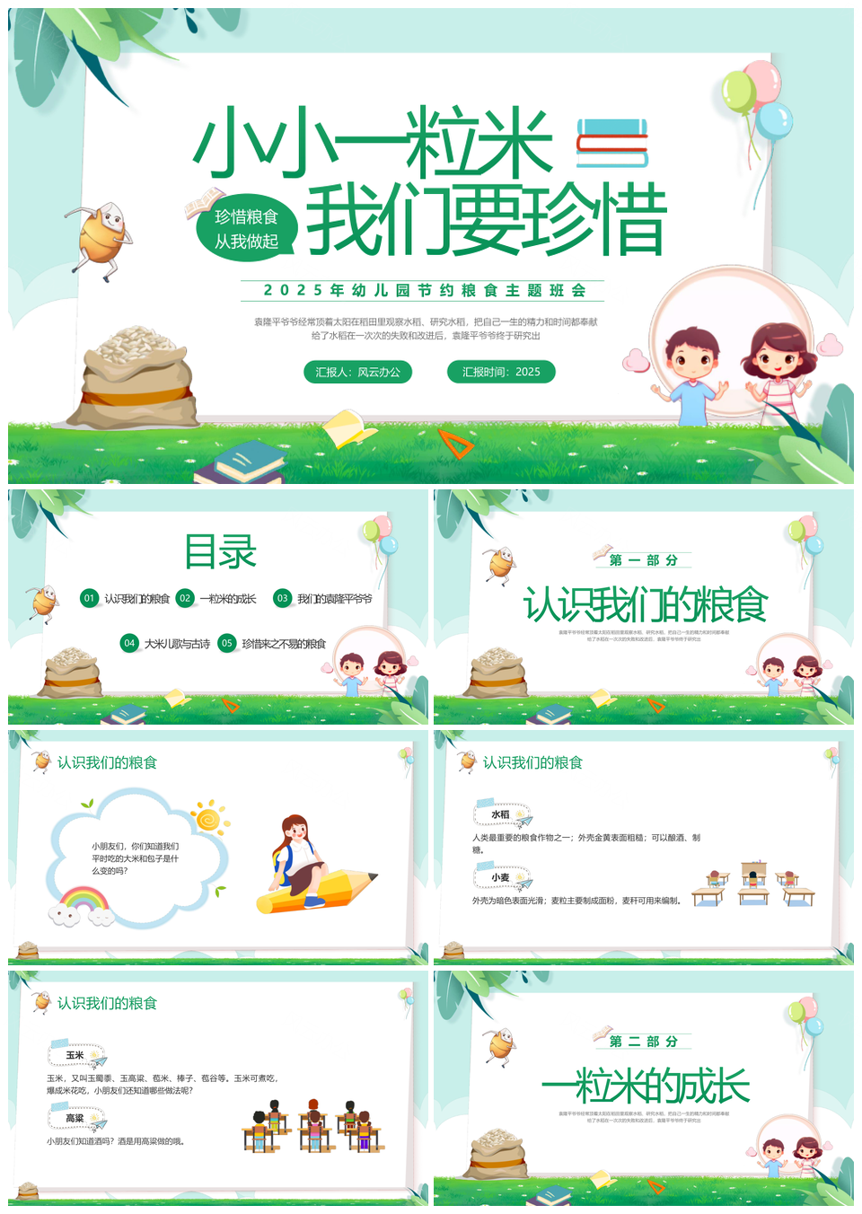 这是一张2025绿色卡通幼儿园世界粮食日节约粮食主题班会PPT动态模板,包含2025、绿色、卡通、幼儿园、世界粮食日、节约、粮食、主题、班会等主题内容,也可用作2025绿色卡通幼儿园、绿色卡通幼儿园世界粮食日、世界粮食日节约粮食主题班会、节约粮食主题班会PPT动态模板、2025世界粮食日节约粮食主题班会、绿色卡通幼儿园、卡通幼儿园世界粮食日、幼儿园世界粮食日节约粮食、世界粮食日主题班会PPT、主题班会PPT动态模板、2025绿色世界粮食日、世界粮食日节约粮食、节约粮食主题班会、主题班会PPT、PPT动态模板等PPT场景使用。 风云办公提供的2025绿色卡通幼儿园世界粮食日节约粮食主题班会PPT动态模板,下载格式为pptx,一共21页,作品中文字及图均可以修改和编辑,图片更改请在作品中右键图片并更换,文字修改请直接点击文字进行修改。