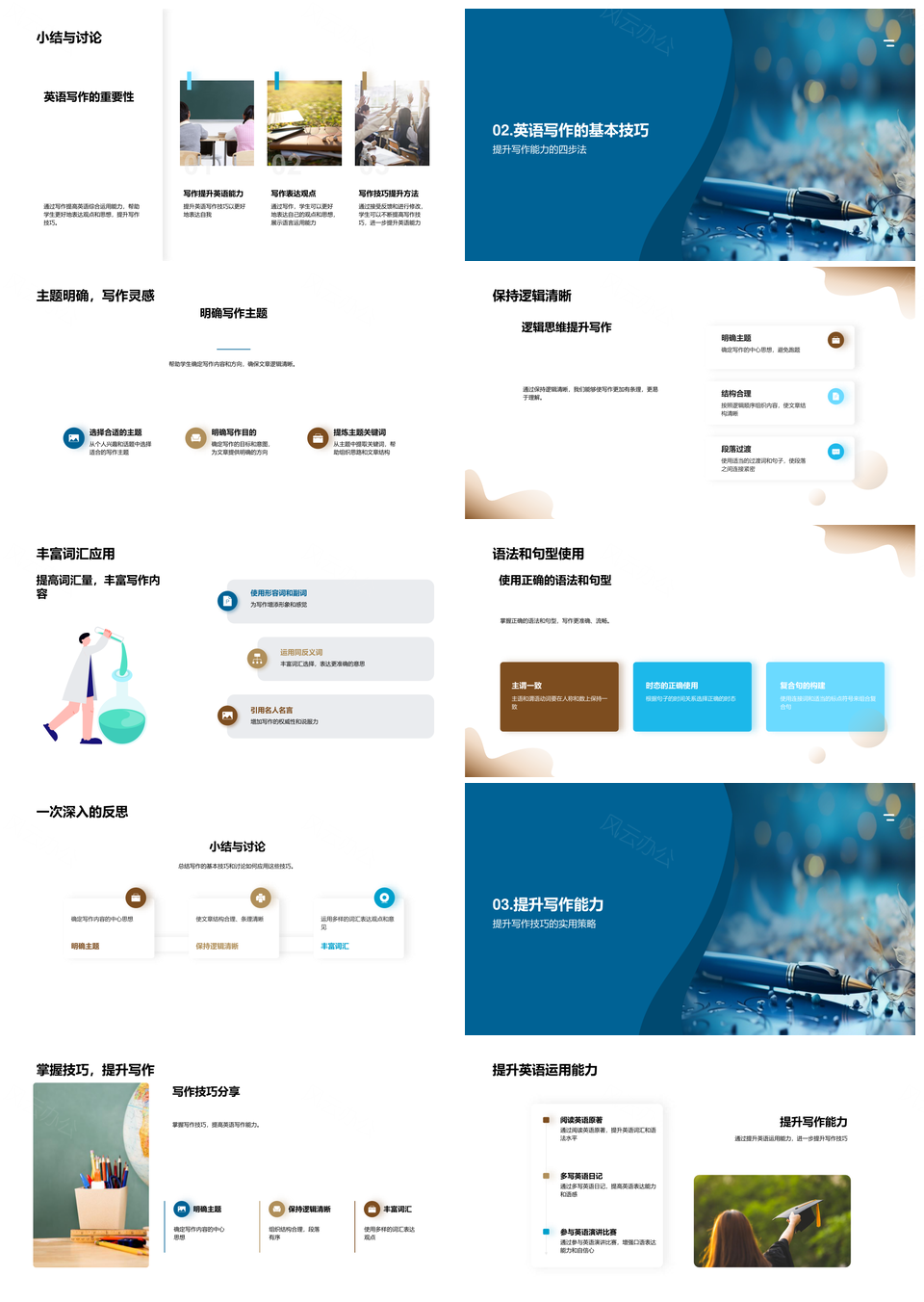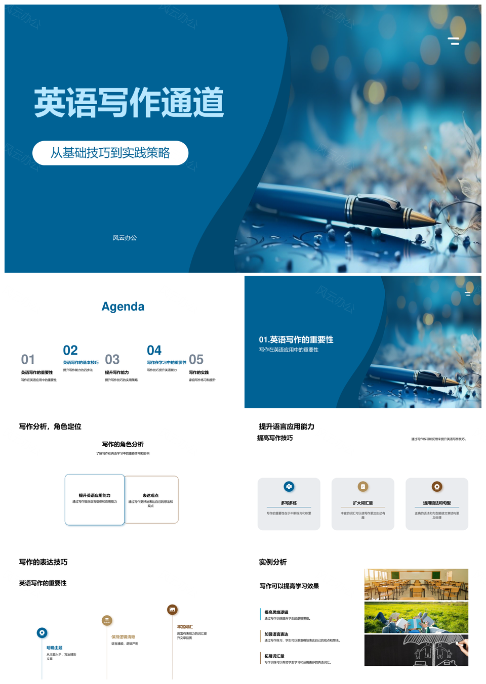 英语写作基础技巧实践策略逻辑词汇语法PPT模板推荐