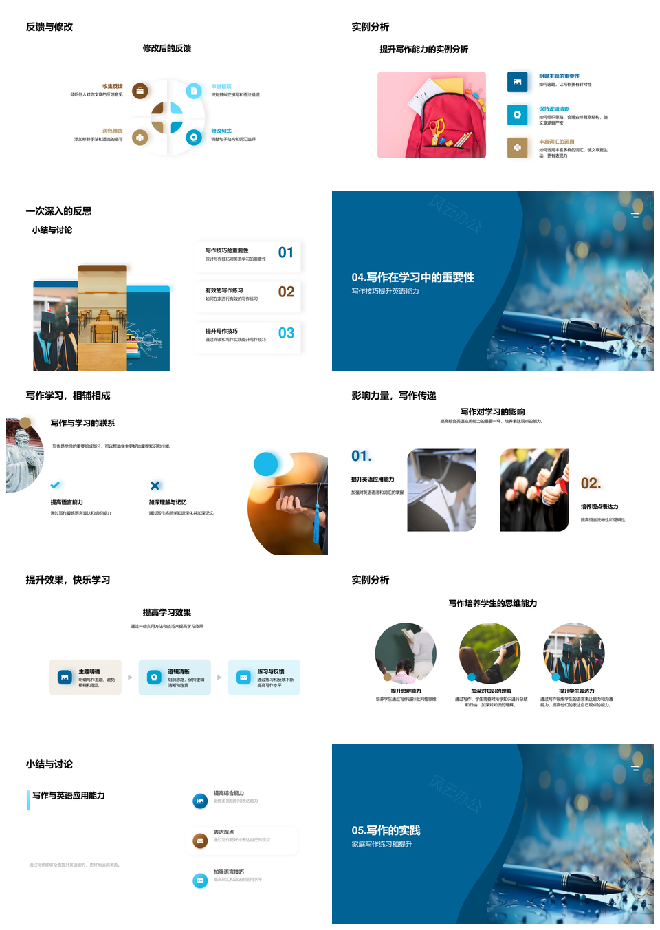 这是一张英语写作基础技巧实践策略逻辑词汇语法PPT模板,包含英语写作、基础技巧、实践策略、逻辑、词汇、语法等主题内容,也可用作英语写作基础技巧、基础技巧实践策略、实践策略逻辑词汇、逻辑词汇语法、英语写作基础、写作基础技巧、基础技巧实践、技巧实践策略、实践策略逻辑、策略逻辑词汇、逻辑词汇语法、英语写作、基础技巧、实践策略、逻辑词汇等PPT场景使用。 风云办公提供的英语写作基础技巧实践策略逻辑词汇语法PPT模板,下载格式为pptx,一共33页,作品中文字及图均可以修改和编辑,图片更改请在作品中右键图片并更换,文字修改请直接点击文字进行修改。