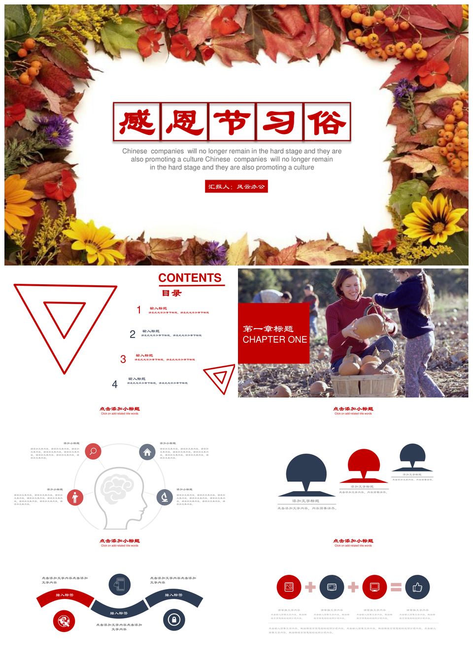 这是一张感恩节习俗PPT模板,包含感恩节、习俗等主题内容,也可用作感恩节、习俗 感恩节习俗等PPT场景使用。 风云办公提供的感恩节习俗PPT模板,下载格式为pptx,一共30页,作品中文字及图均可以修改和编辑,图片更改请在作品中右键图片并更换,文字修改请直接点击文字进行修改。
