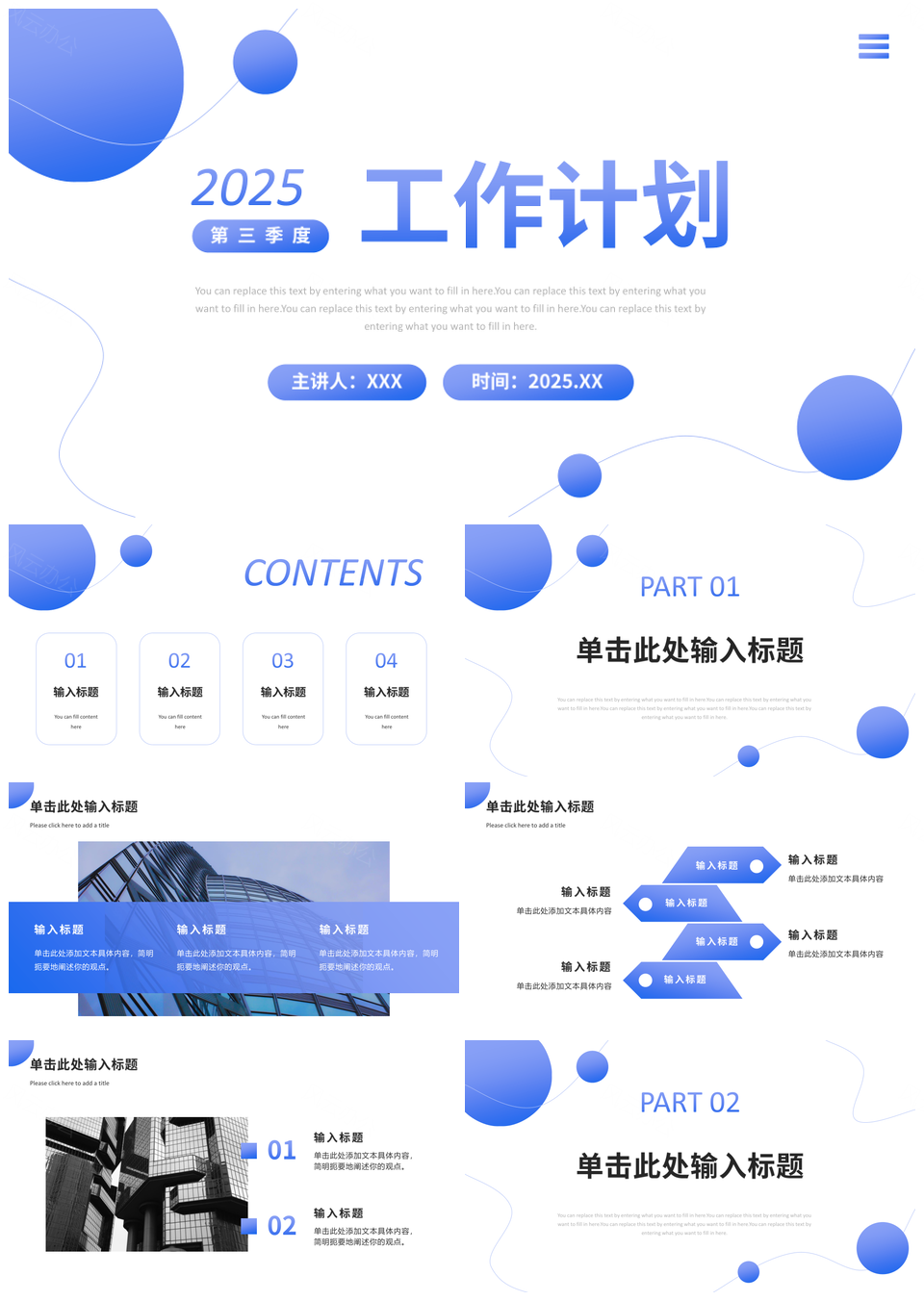 这是一张2025商务第三四季度工作规划运营计划PPT模板,包含2025、商务、第三四季度、工作规划、运营计划等主题内容,也可用作2025商务第三四季度工作规划运营计划、2025商务第三四季度工作规划、2025商务第三四季度运营计划、商务第三四季度工作规划运营计划、2025商务工作规划运营计划、第三四季度工作规划运营计划、2025商务第三四季度、商务第三四季度工作规划、商务第三四季度运营计划、2025商务工作规划、2025商务运营计划、2025第三四季度工作规划、2025第三四季度运营计划、商务工作规划运营计划、工作规划运营计划等PPT场景使用。 风云办公提供的2025商务第三四季度工作规划运营计划PPT模板,下载格式为pptx,一共19页,作品中文字及图均可以修改和编辑,图片更改请在作品中右键图片并更换,文字修改请直接点击文字进行修改。