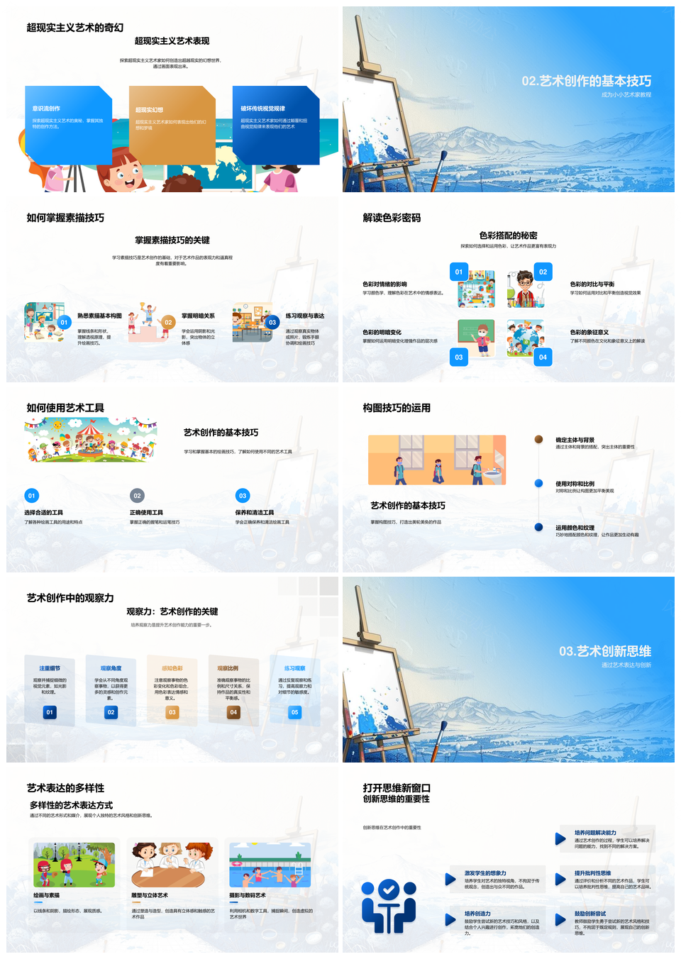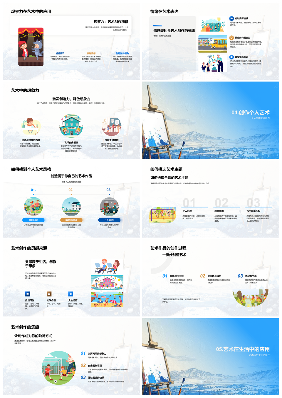 艺术创作风格技巧色彩工具创新思维观察教学PPT模板推荐